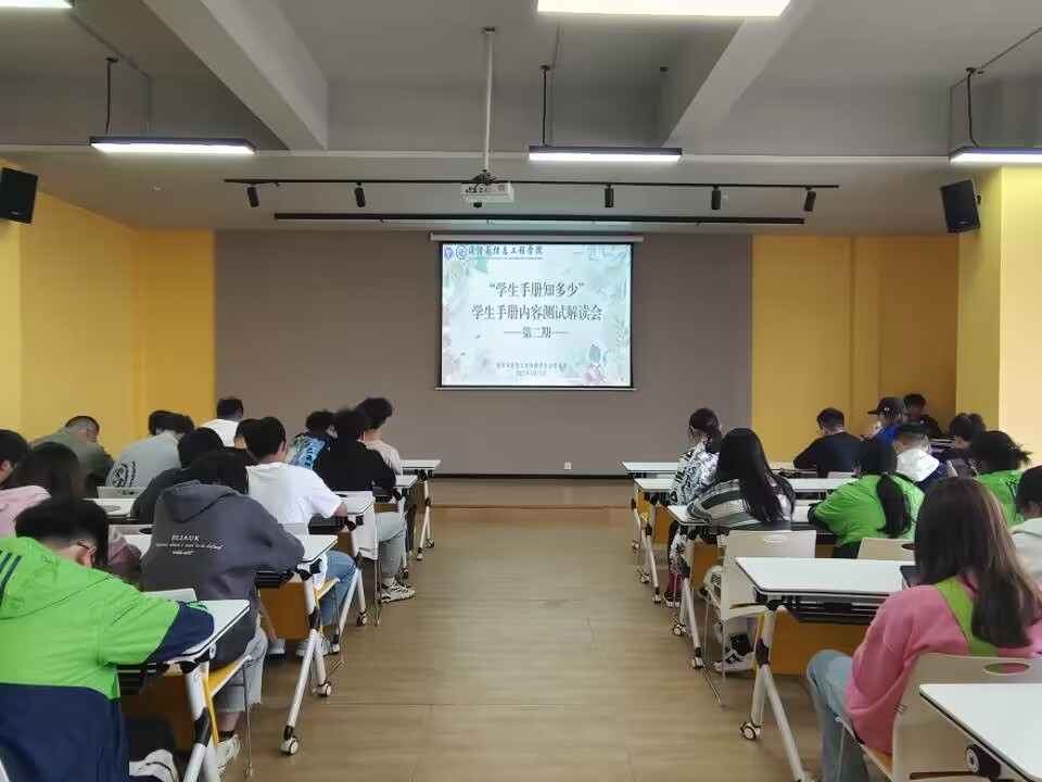 《学生手册》内容测试解读会将持续开展下去,督促广大学生进一步学习学校各项规章制度,加强校园文化建设,提高学校在校学生的行为准则,引导学生遵守校规校纪。为培养自信自强,守正创新、踔厉奋发、勇毅前行的完满大学生打下坚实基础。