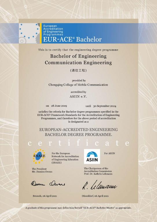 下一篇:EQANIE Accreditation Certificate for "Internet of Things Engineering" (Bachelor Engineering) at the Chongqing College of Mobile Communication