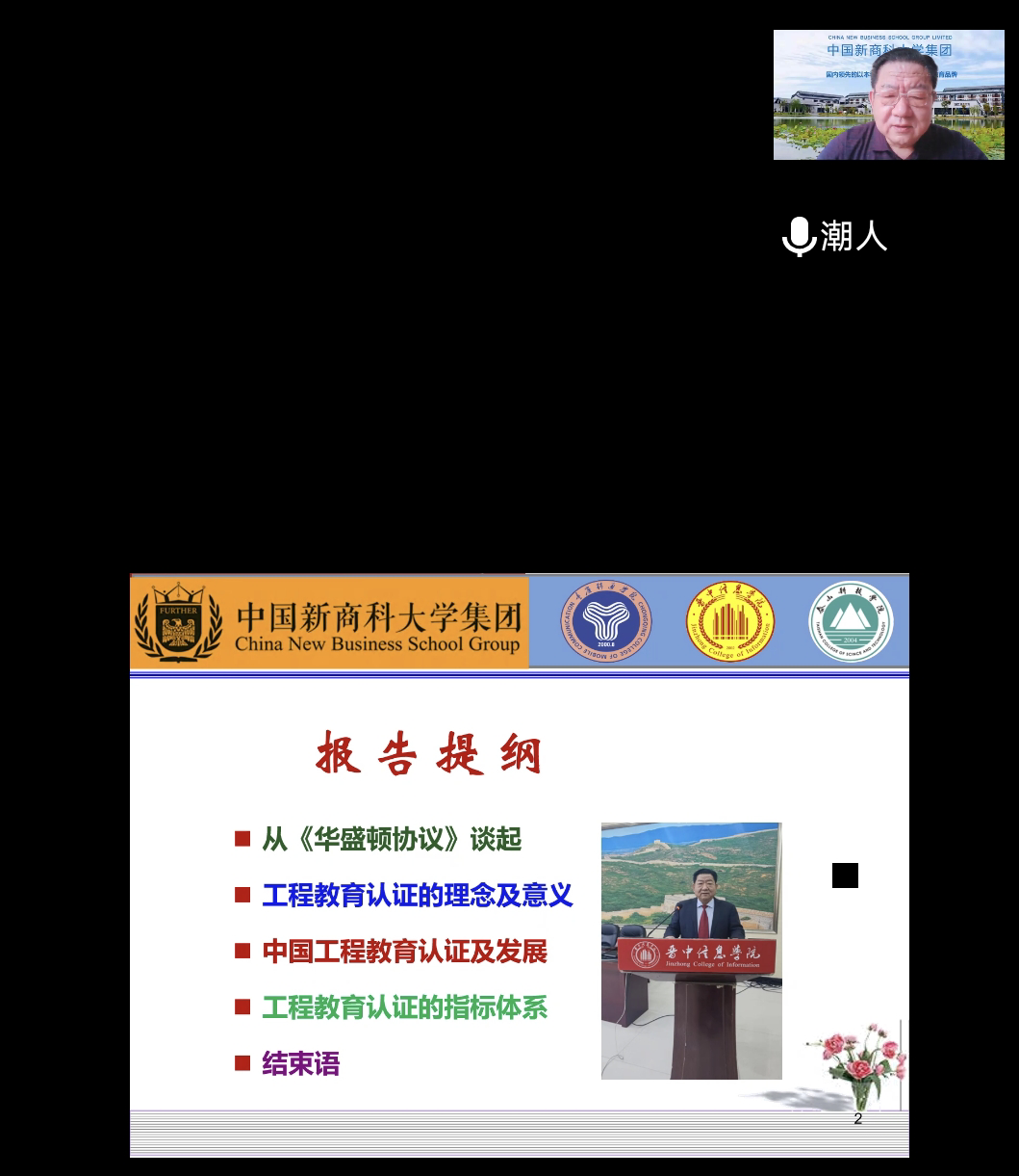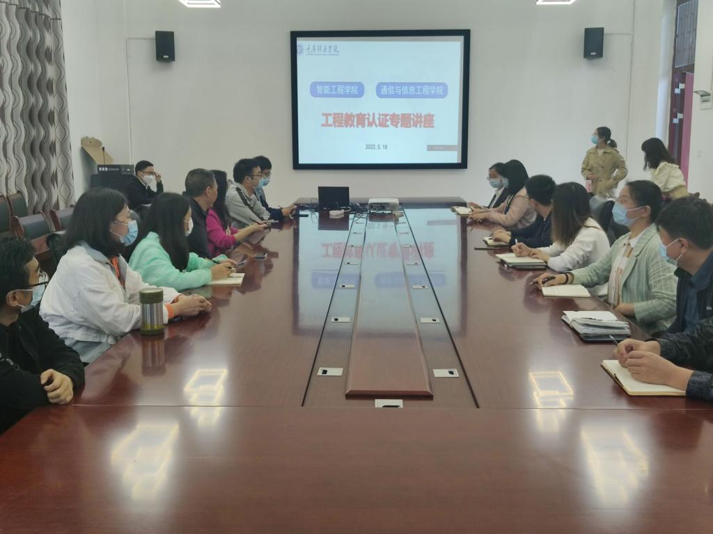 为推进专业内涵发展,促进我校德国ASIIN专业认证工作切实开展, 5月18日,通信与信息工程学院和智能工程学院联合开展“工程教育认证”专题讨论活动。活动特邀中国新商科大学集团工科学科带头人陈立潮教授进行了“工程教育认证”专题线上讲座,会后在梅若书院207进行了线下专题讨论。本次活动由通信与信息工程学院李文娟院长主持,通信与信息工程学院和智能工程学院全体教师参会。