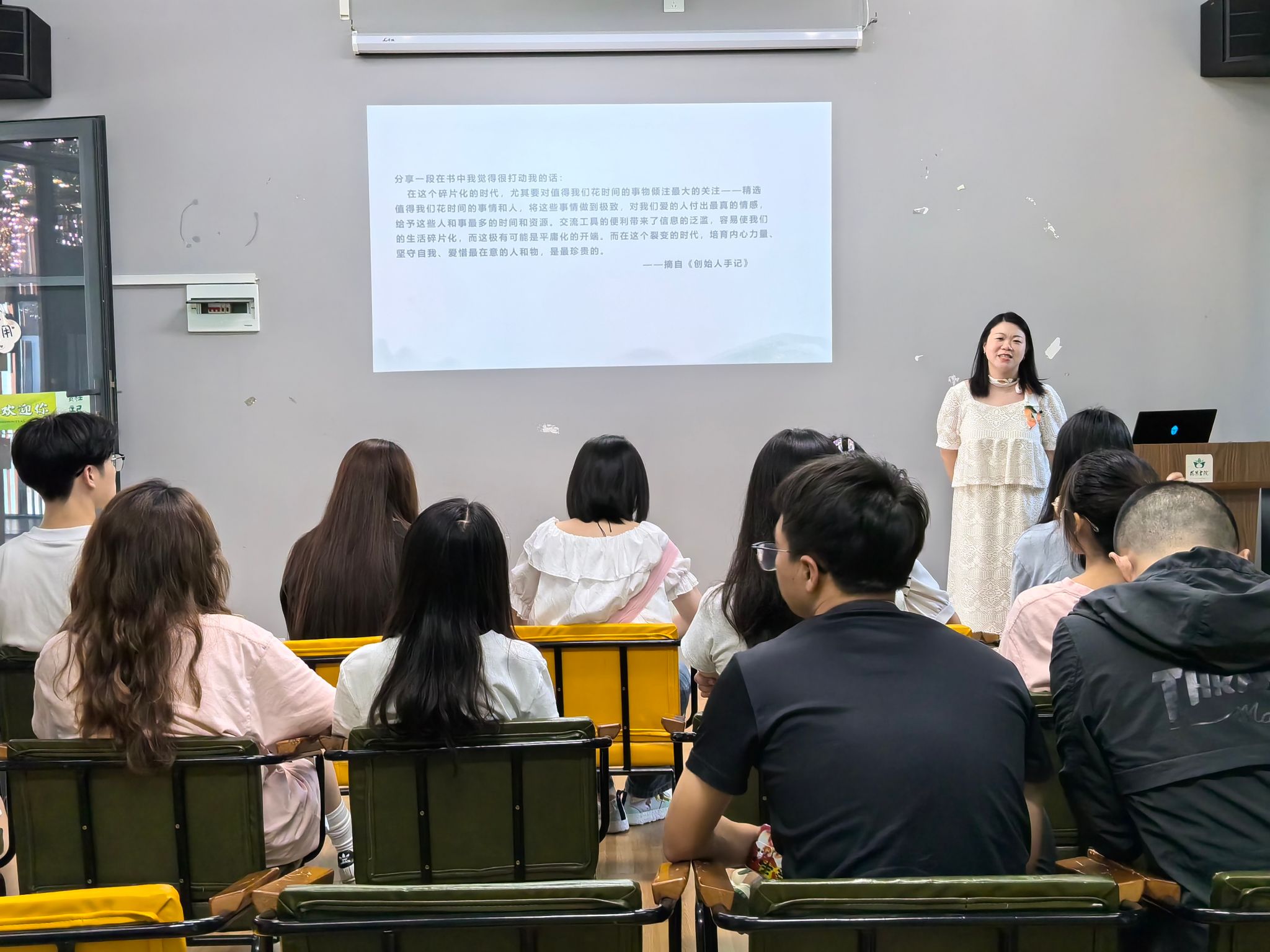 粗缯大布裹生涯,腹有读书气自华。仲夏五月,为了激发同学们的阅读热情,提升知识水平,培养“多读书,读好书”的良好习惯,异科导师黄新燕特意于2024年月21日下午15:00在花果书院多功能活动室举办了一场主题为“字里行间的人生哲学:品大咖与幸福感”的大咖阅读分享会。同学们共同分享阅读的快乐与收获,也增进了彼此之间的沟通与交流。