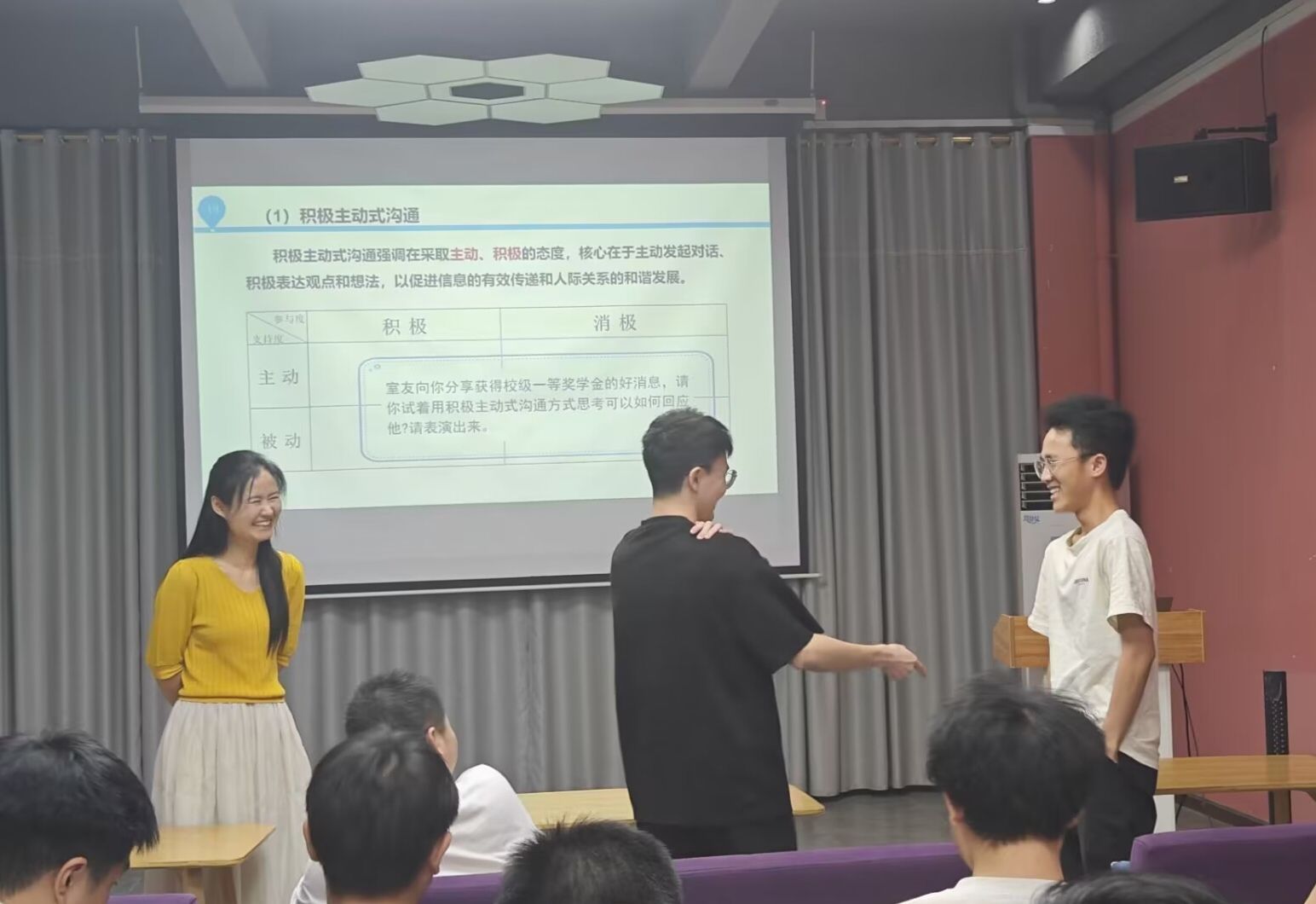 为了让学生们更好地掌握沟通技巧,活动还设置了模拟职场情境表演环节。学生们分组扮演不同角色,模拟真实职场场景,运用所学的沟通技巧进行交流。在导师的指导下,学生们通过实践不断磨练自己的沟通技巧,提高了应对职场挑战的能力。