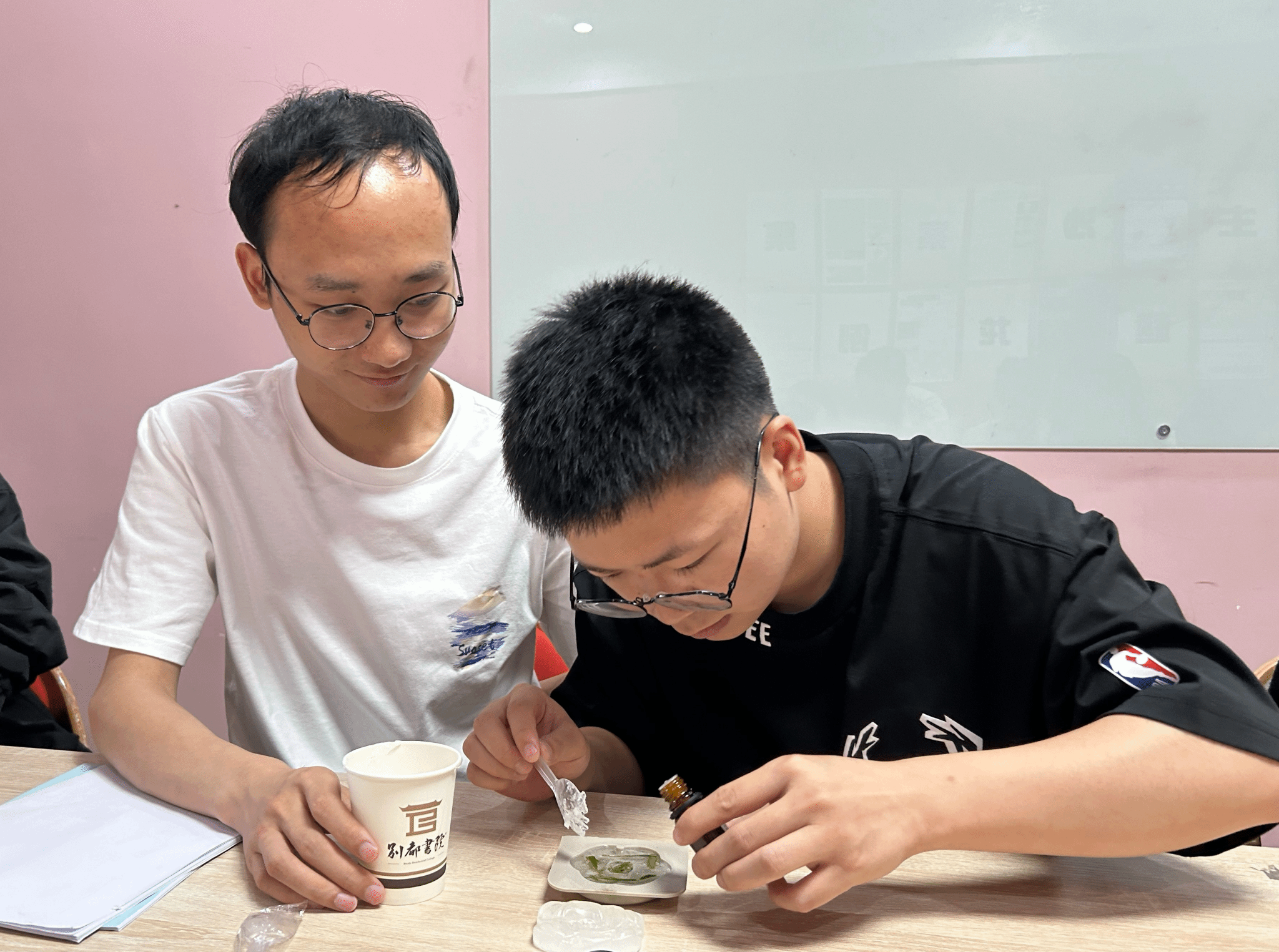 其次,林森老师就茶皂制作注意事项、流程、安全事项等方面做了分享,在同学们跃跃欲试的神情中,茶皂初体验徐徐拉开帷幕。同学们按照制作方法的程序去一道一道复刻,看着渐渐定型的茶皂,轻嗅着鼻间弥漫的浓浓茶香,成就感油然而生。师生在集趣味与体验于一体的劳动实践过程中,以学、看、闻、做的方式近距离感受了传统劳动人民的智慧产物,深深体现了劳动教育贴近生活实际的时代价值。