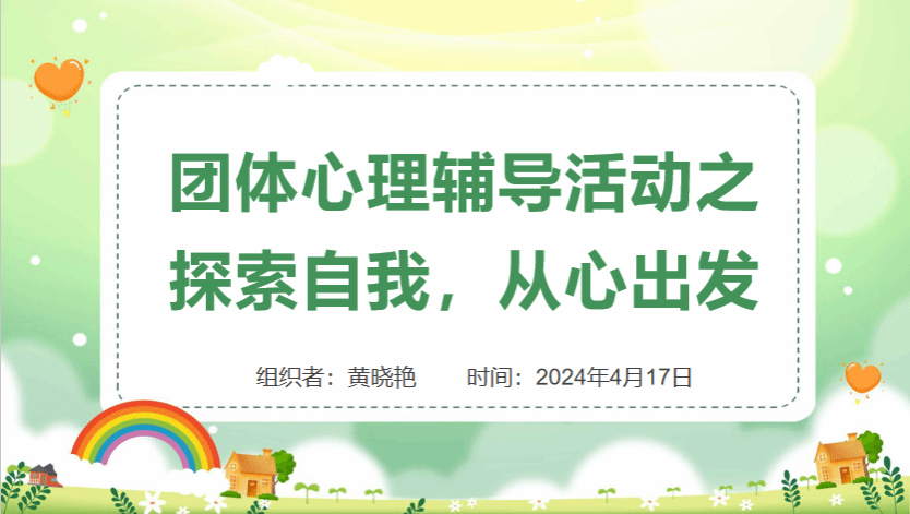 活动最后,黄老师对同学们的分享进行了总结和反馈,并鼓励同学们要保持积极的心态,勇敢面对生活中的挑战,同时要学会寻求帮助和支持,共同度过人生的每一个阶段。此次团体心理辅导活动,不仅为学生们提供了一个展示自我、表达情感的平台,也让他们通过互动的方式更深入地了解自己的内心世界。相信在未来的学习和生活中,大家会继续保持这份初心,用心创造出属于自己的美好未来。