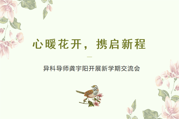 新学期第一次异科导师交流会活动在同学们的欢声笑语中圆满结束,通过本次交流会,龚老师为同学们指点迷津,提出建议,同学们也对自己新学期有了规划和期许。在这个春暖花开的季节里,师生们也将继续携手,启程未来。