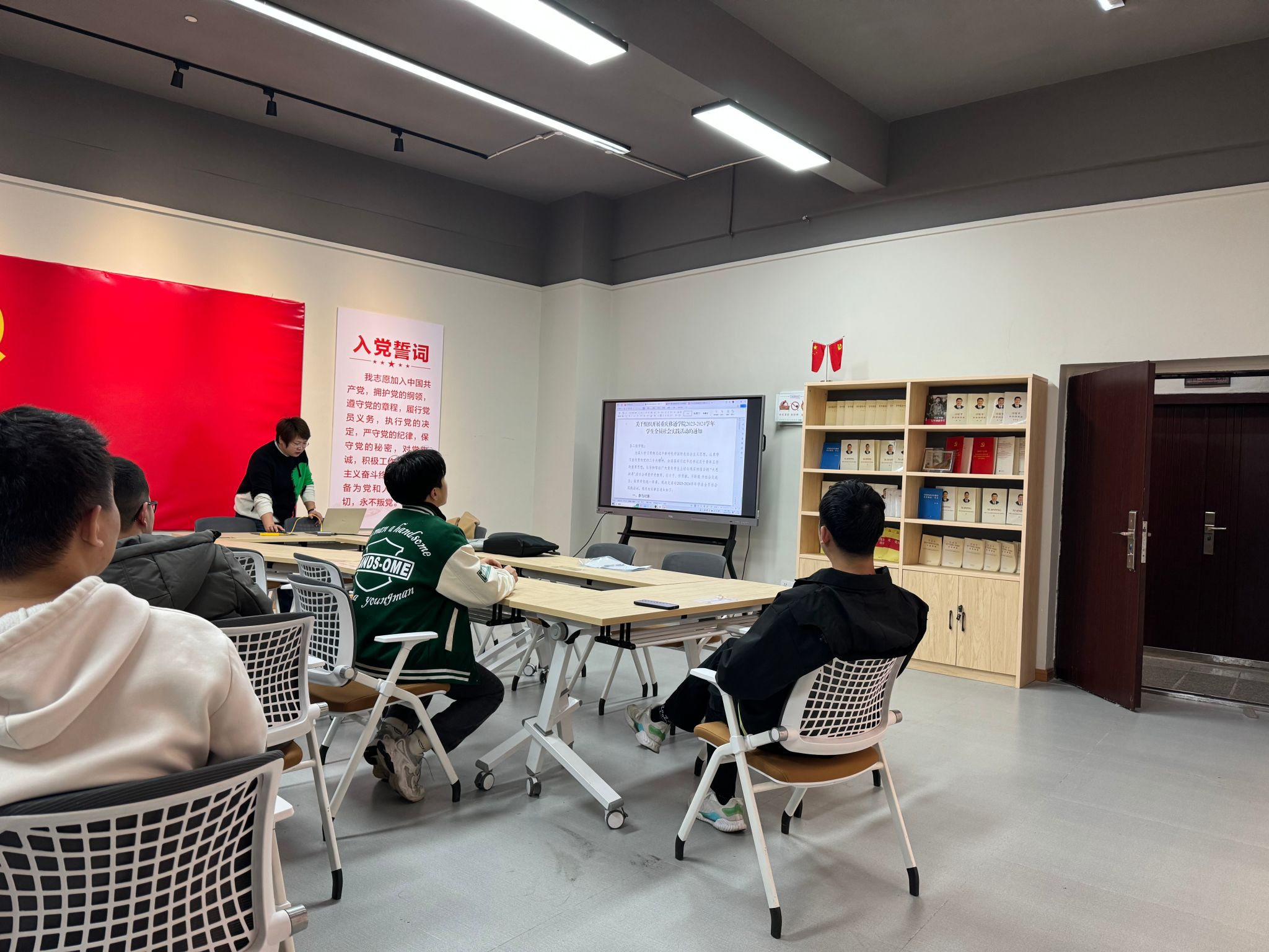 会议第二项议程,宋老师向同学们传达了《重庆移通学院关于组织开展2023-2024学年学生全员社会实践活动的通知》,并就社会实践活动的开展、实践报告撰写、时间节点安排等重点部分向同学们做了强调,希望同学们按时完成各项工作,积极参加各类社会实践活动,树立服务社会的正确观念。