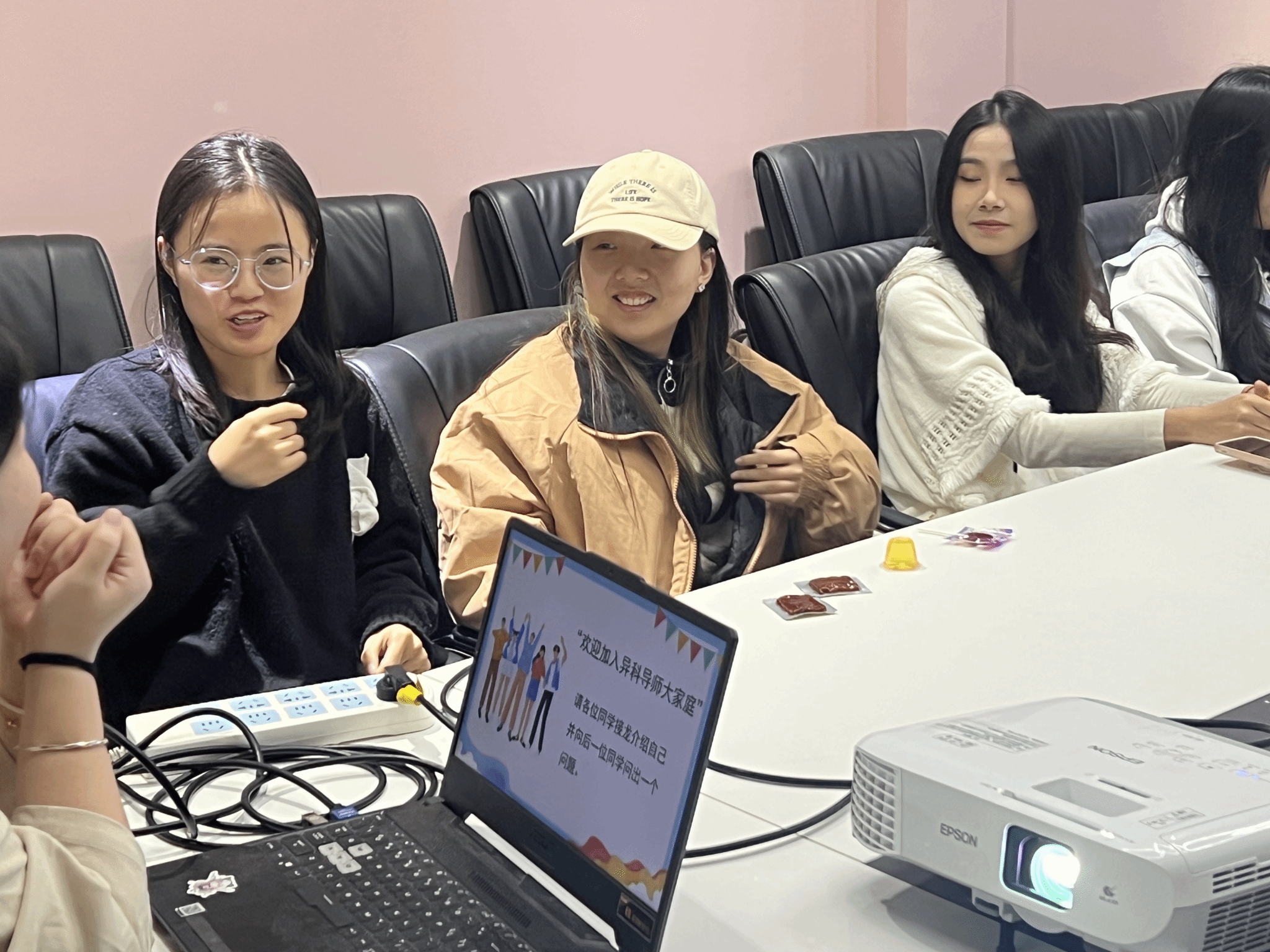 首先,杨梦雅老师做了自我介绍,并引导同学们完成了自我介绍小游戏,游戏起到了破冰作用,让大家快速熟悉起来。然后杨老师向同学们介绍了过去组织的各类异科活动,包含了大咖阅读、师生共膳、共同下厨、手工制作、体育比赛、知识竞答等多种形式,这些活动不仅让同学们放松身心,也培养了他们的团队合作意识和创新思维。杨老师对后续活动规划做了简单介绍,考虑到大三同学较大的学业压力、就业压力,未来的工作会更重视大家的学习方向,包括竞赛指导、简历指导、就业考研信息咨询、情绪解压等。