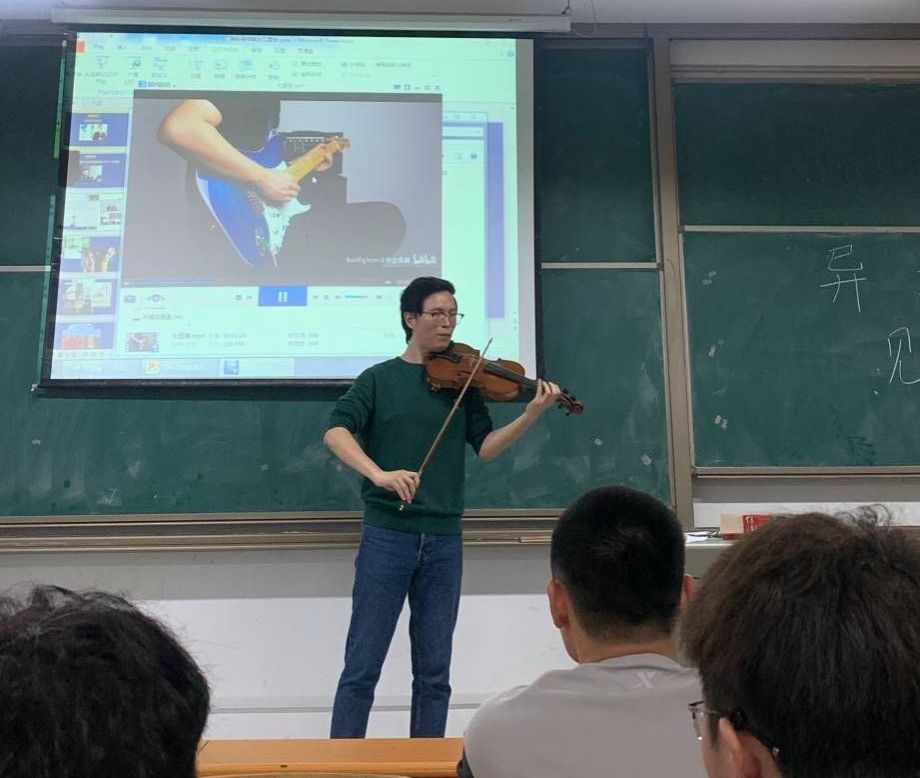 在彼此相对熟悉之后,在学生们的邀请下,石权老师现场用小提琴演奏了《青花瓷》,收到学生们的热情感染,又加演了《兰亭序》和《七里香》,现场氛围达到顶峰。
