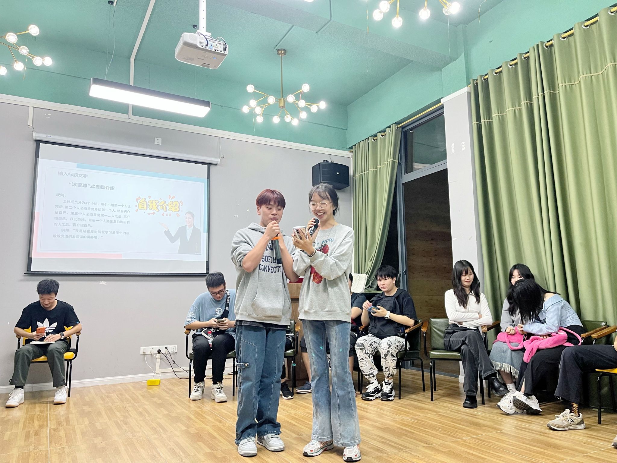 随后,黄晓艳老师组织同学们进行破冰小游戏——“1块钱,2块钱”“猜猜Ta是谁”和“滚雪球式自我介绍”。游戏刚开始同学们还较为拘谨,随着游戏逐步进行,大家开始变得大胆起来,更加积极主动地参与到游戏中来;在第二个小游戏中,黄晓艳老师还为游戏前三名准备了精美小礼品并进行了拍照留念;最后,自我介绍游戏环节,大家都主动站起来进行自我介绍,还有同学带来了才艺展示,现场氛围十分活跃。通过玩游戏的互动方式,更好的拉近了师生关系并且让彼此都有了更多的了解和认识。