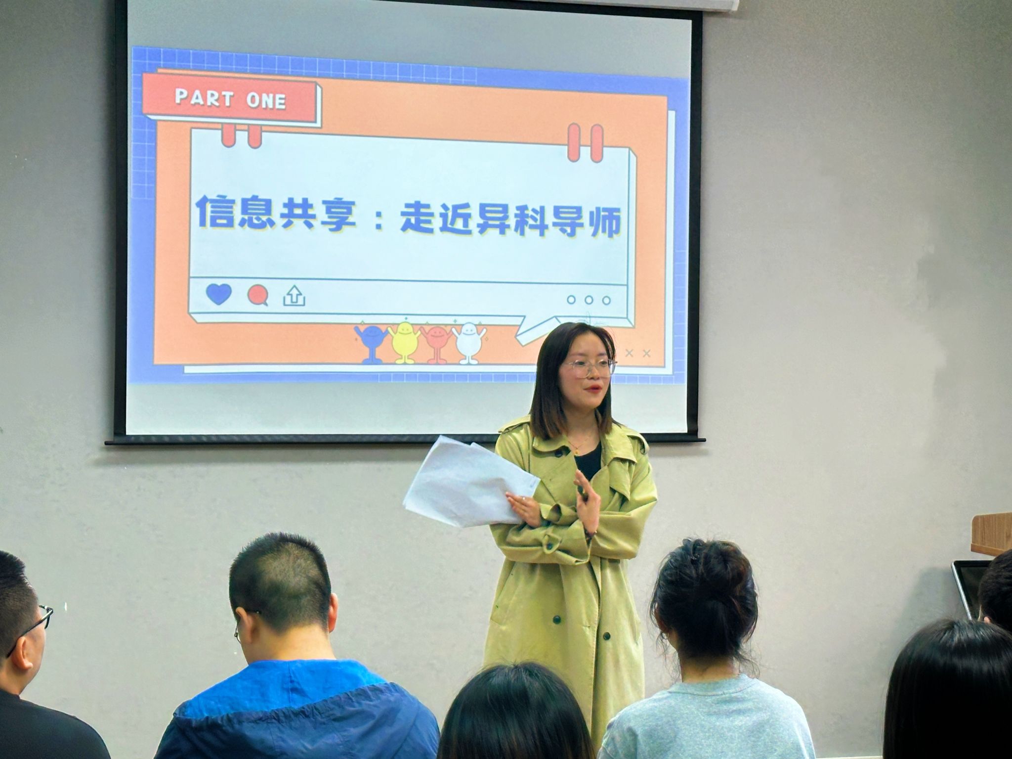 活动伊始,胡霁贤老师向同学们抛出“什么是异科导师?”的问题,正式开启了异科班见面面。随即,胡霁贤老师结合自身的学科背景从异科导师是什么、做什么着手,为同学们系统介绍了异科导师的意义与职能,进一步帮助同学们明晰全生异科导师,为后续异科导师相关工作开展打下坚实基础。同时胡霁贤老师围绕学校办学定位、四位一体双院制等内容为同学们解读学校办学理念,鼓励同学们在移通、在完满挖掘兴趣、找到热爱,引导同学们在全新的起点找到全新的方向与目标。