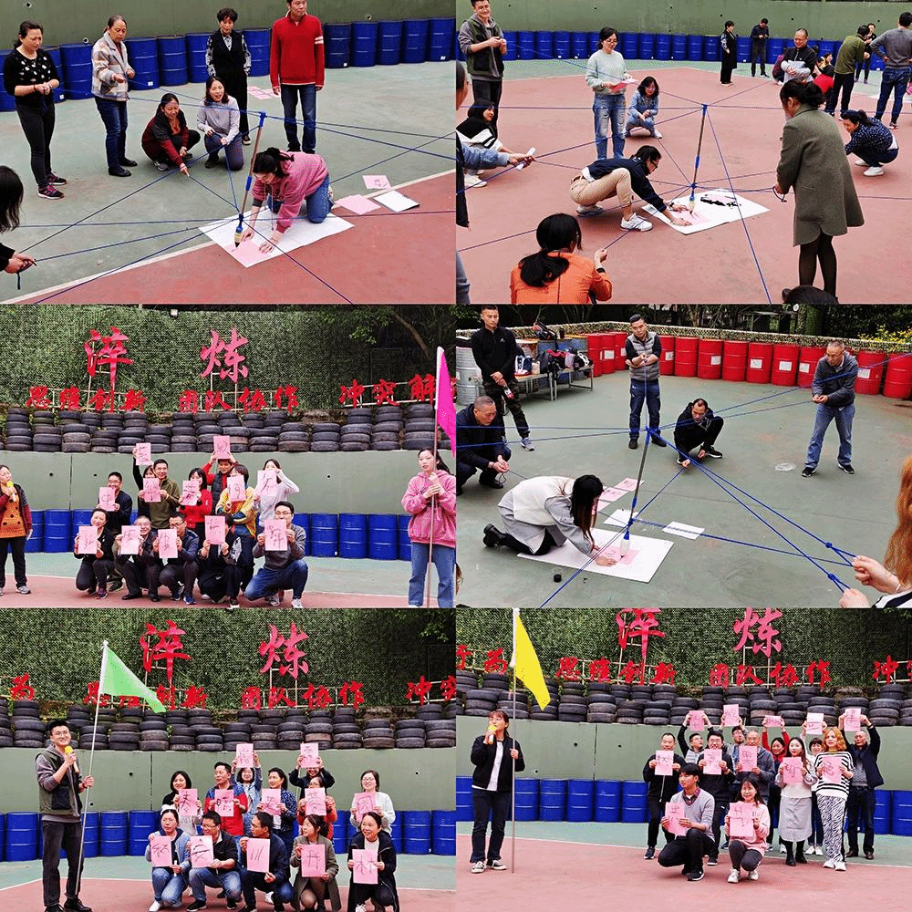 全体老师随机组合分成3个小组参加本次拓展活动。通过第一阶段的破冰游戏,不同教学组老师和辅导员老师彼此相互认识熟悉。每个队伍由队员们自发选出队长、旗手,并在20分钟之内完成队名、队标、口号及队形设计展示的任务,大家都在规定时间内高质量地完成了工作任务,并展示了每个团队的精神风貌,同时在较短的时间内完成了小组团队文化建设,解除团队隔膜,从而快速融入训练主题,点燃训练的热情和互动。