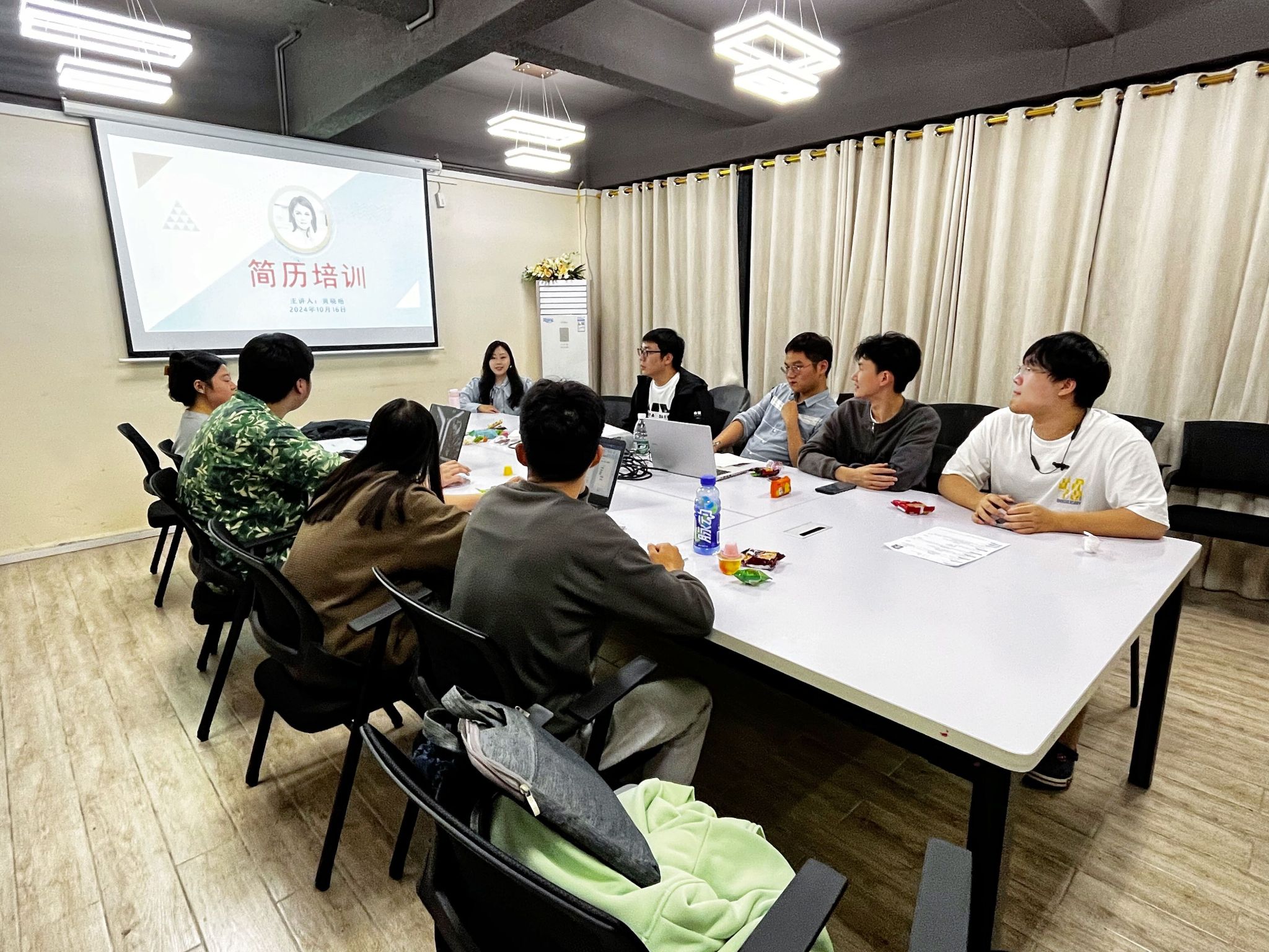 在这个充满希望与挑战的季节里,为了帮助即将步入职场的毕业生们掌握简历撰写的关键技巧,提升求职竞争力,10月16日晚上7点,通识教学部黄晓艳老师带领通信与信息工程学院的异科学生在鱼城书院头脑风暴会议室开展主题为“打造个性简历,开启职场人生”的简历制作专题培训活动。