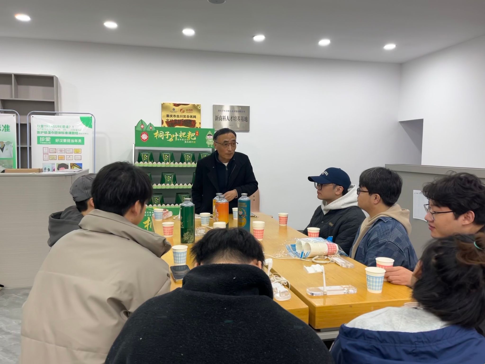 随后,异科导师董道进带领学生们走进了艺术精酿啤酒的世界。他首先对艺术精酿啤酒实战项目组进行了介绍,让学生们对这个项目有了初步的了解。接着,董老师对即将品鉴的几个特色啤酒口味进行了简单的介绍,包括江津花椒、奉节脐橙、黄油风味、永川秀芽四个独具特色的口味。这些啤酒不仅名字独特,而且每一种都蕴含着丰富的地域文化和独特的风味,让人期待不已。