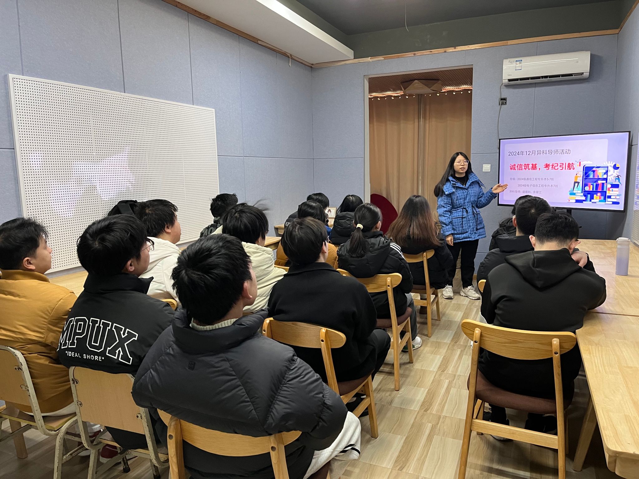 为了强化考试纪律与诚信意识,也积极响应重庆移通学院关于加强考风考纪建设的号召,通信与信息工程学院异科导师盛顺利和余翠兰老师于12月20日在廊桥书院桥墩儿文化堂1举行了一场主题为“诚信筑基,考纪引航”的期末考前诚信考试动员活动。
