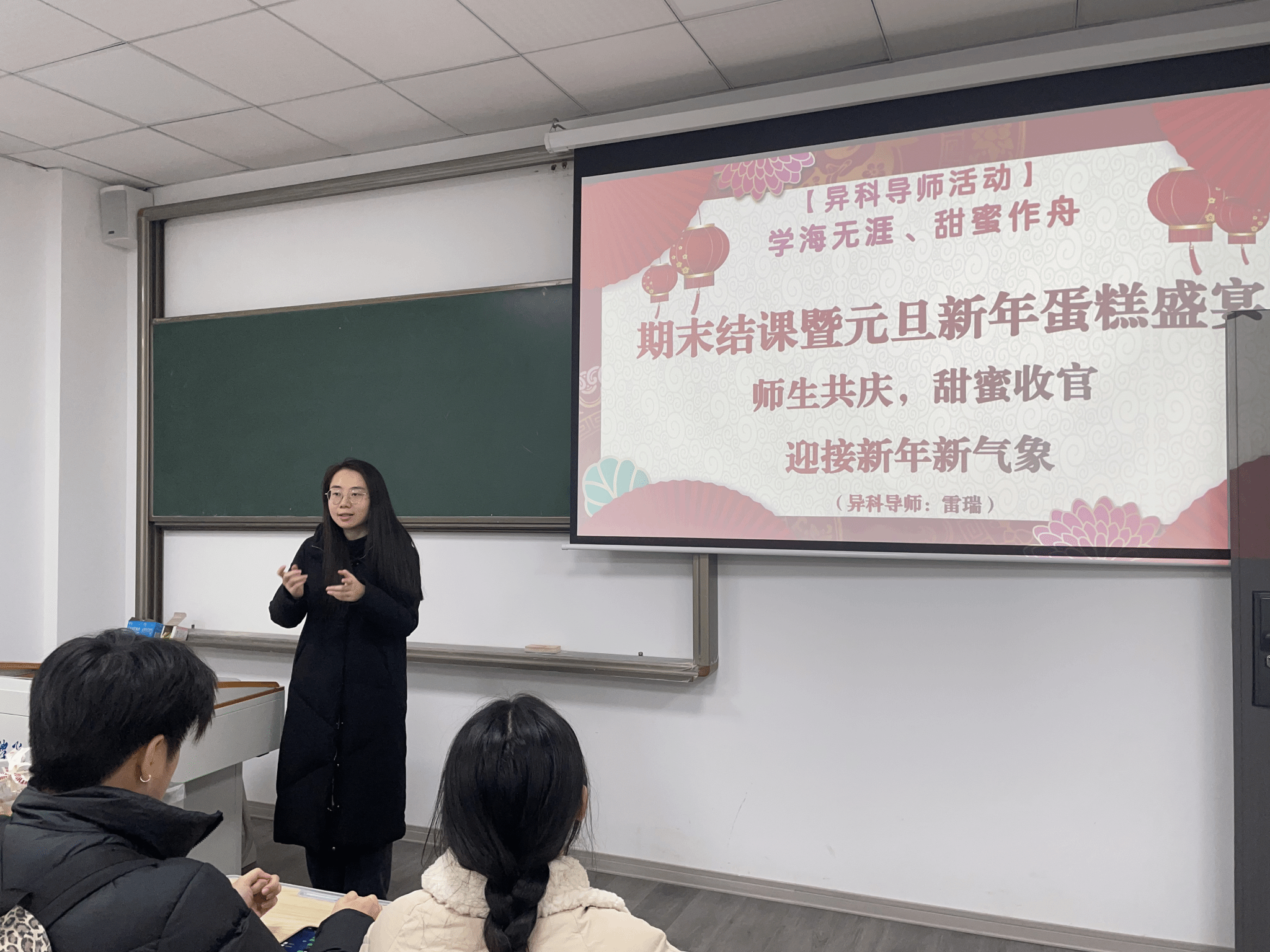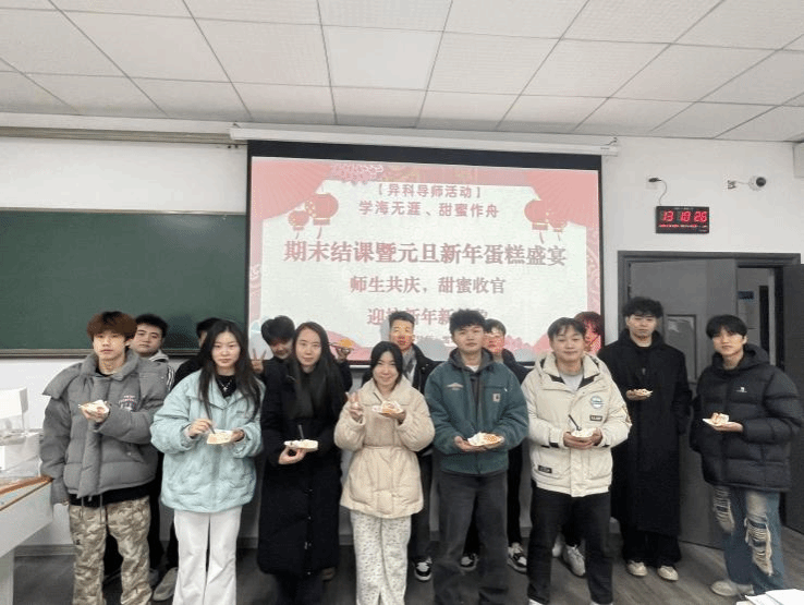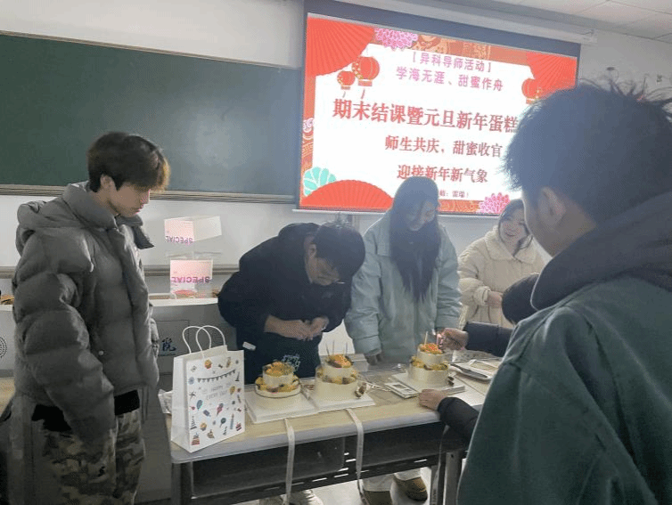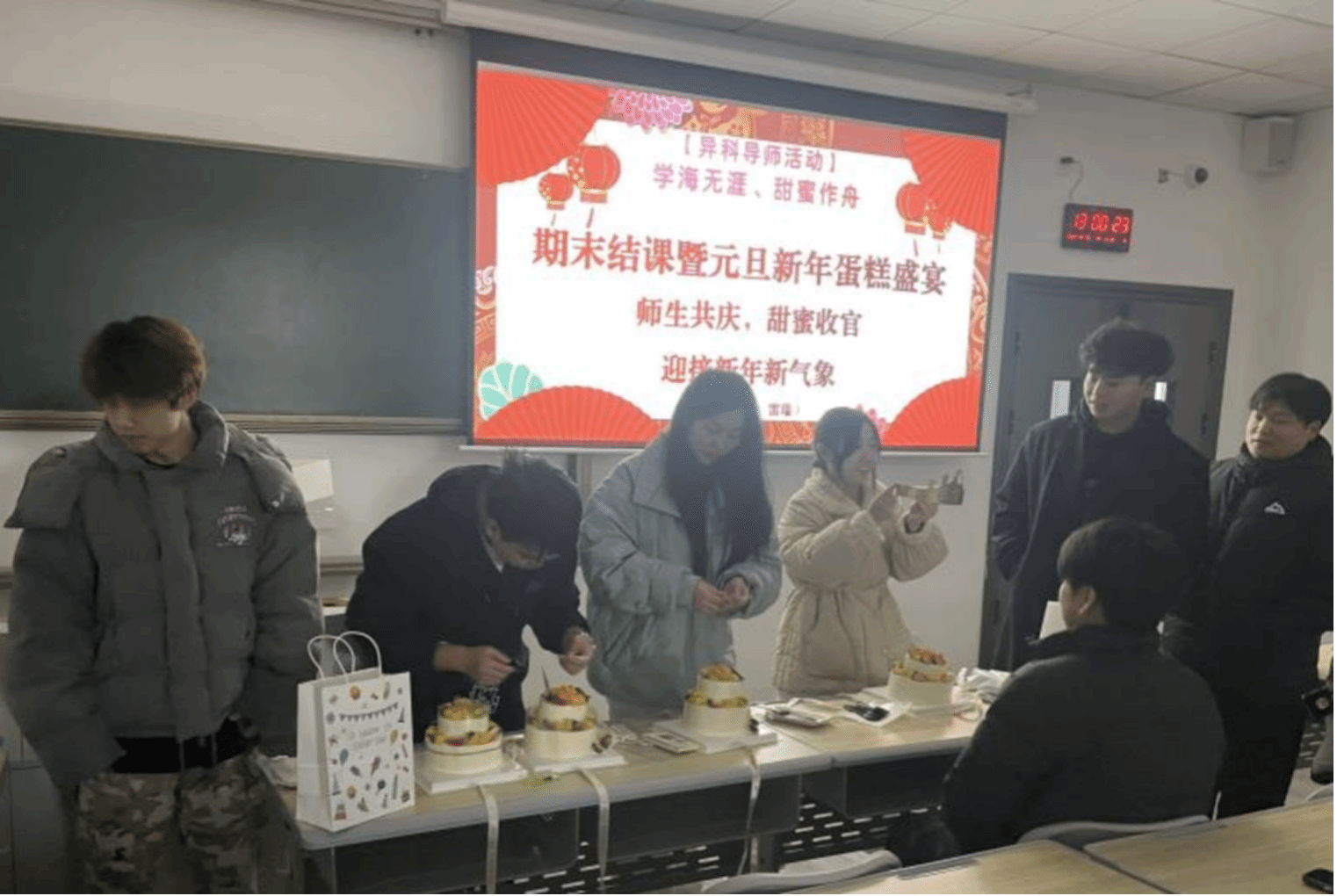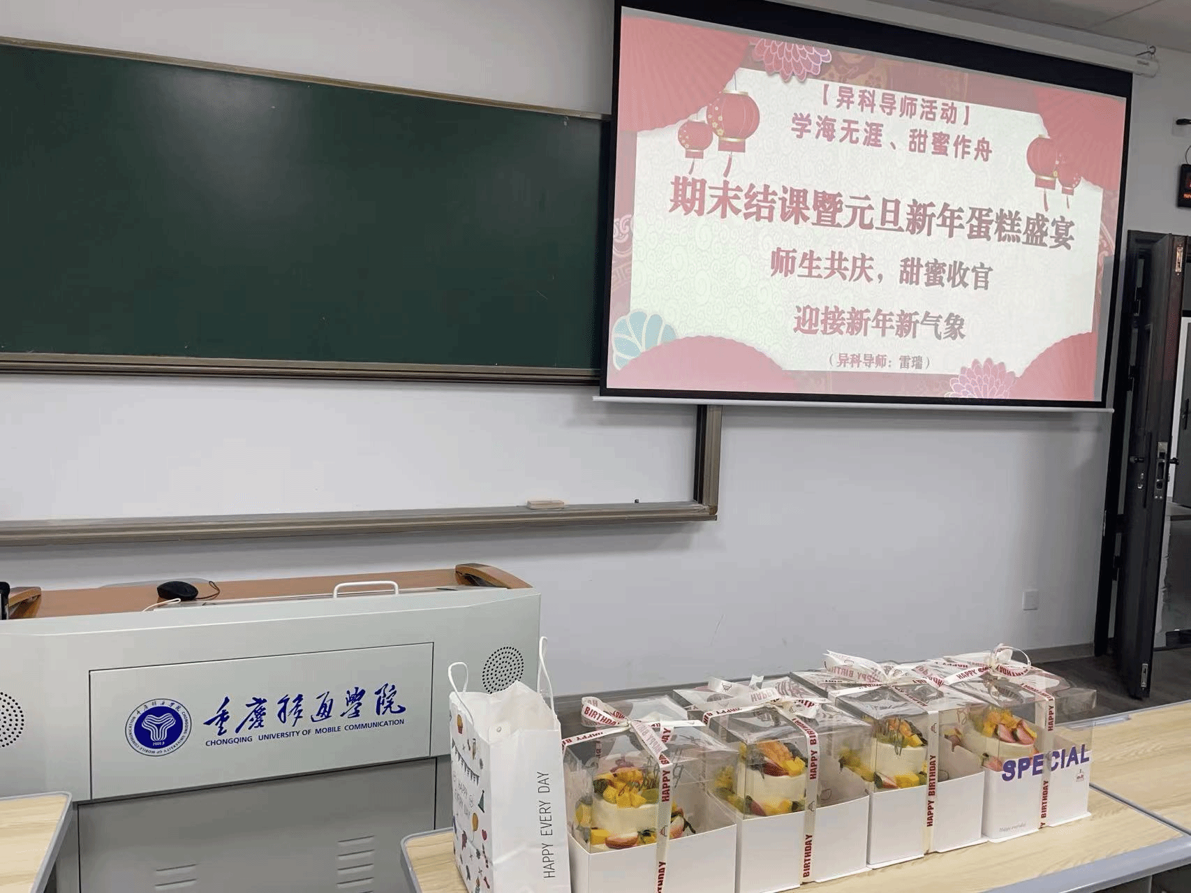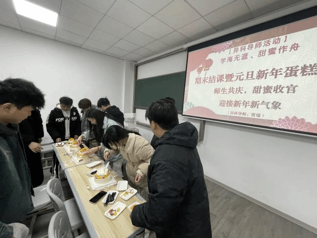 12月20日周五中午,第16周的教学周即将结束,冬日的暖阳迎来了一个充满欢笑与甜蜜的时刻。在这个收获与展望并存的季节里,通信与信息工程学院异科导师雷瑞携异科学生,共同举办了一场别开生面的期末结课暨元旦新年蛋糕盛宴。这不仅是对过去一学期勤奋学习与刻苦工作的总结,更是对未来一年美好愿景的期许。