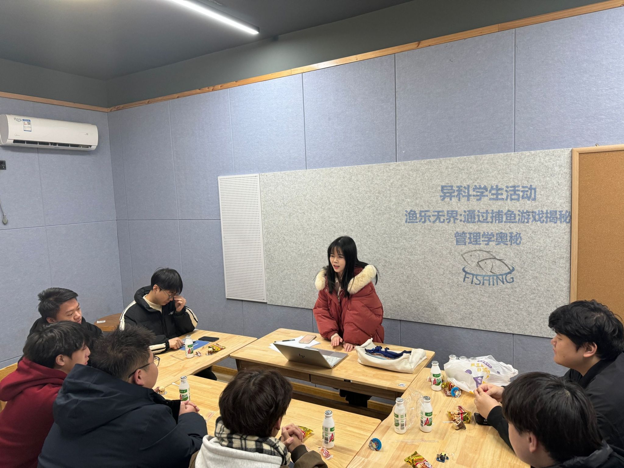 12月20日,一场别开生面的活动在廊桥书院活动室成功举办,本次活动由通信与信息工程学院异科导师谭月精心策划,活动主题为“渔乐无界:通过捕鱼游戏揭秘管理学奥秘”,旨在通过趣味性的捕鱼游戏,向异科学生揭示管理学中的奥秘。