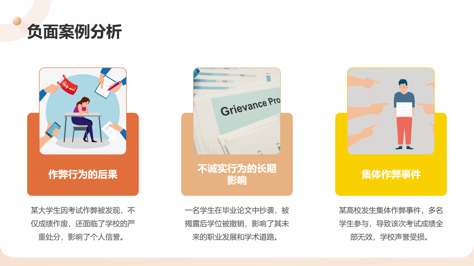 为了让学生们更加深入地理解诚信考试的内涵,赵晓玲老师特意选取了一些真实的学术不端案例进行分析。通过剖析这些案例的成因、后果及影响,引导学生们认识到诚信考试的重要性,并警示他们要时刻坚守诚信考试的底线。