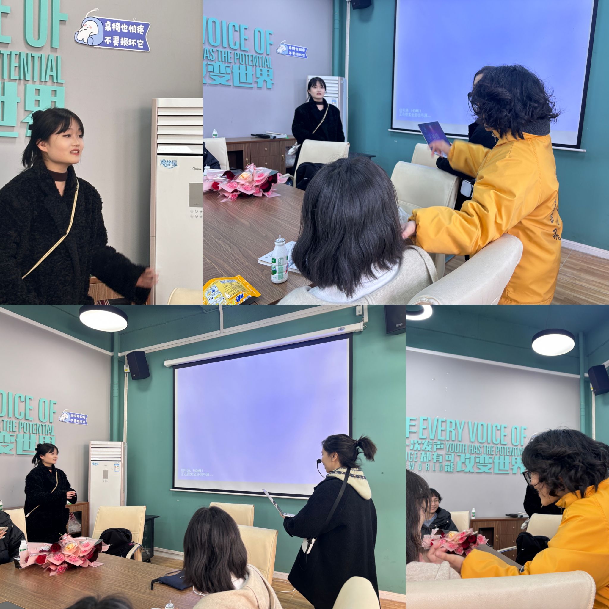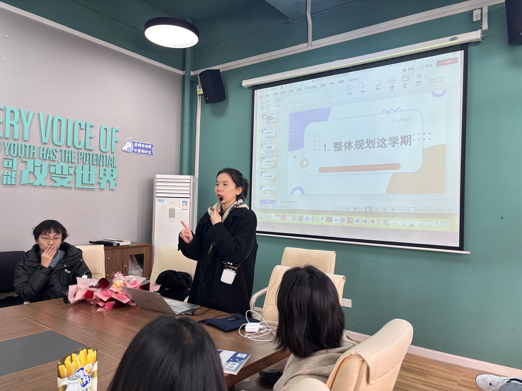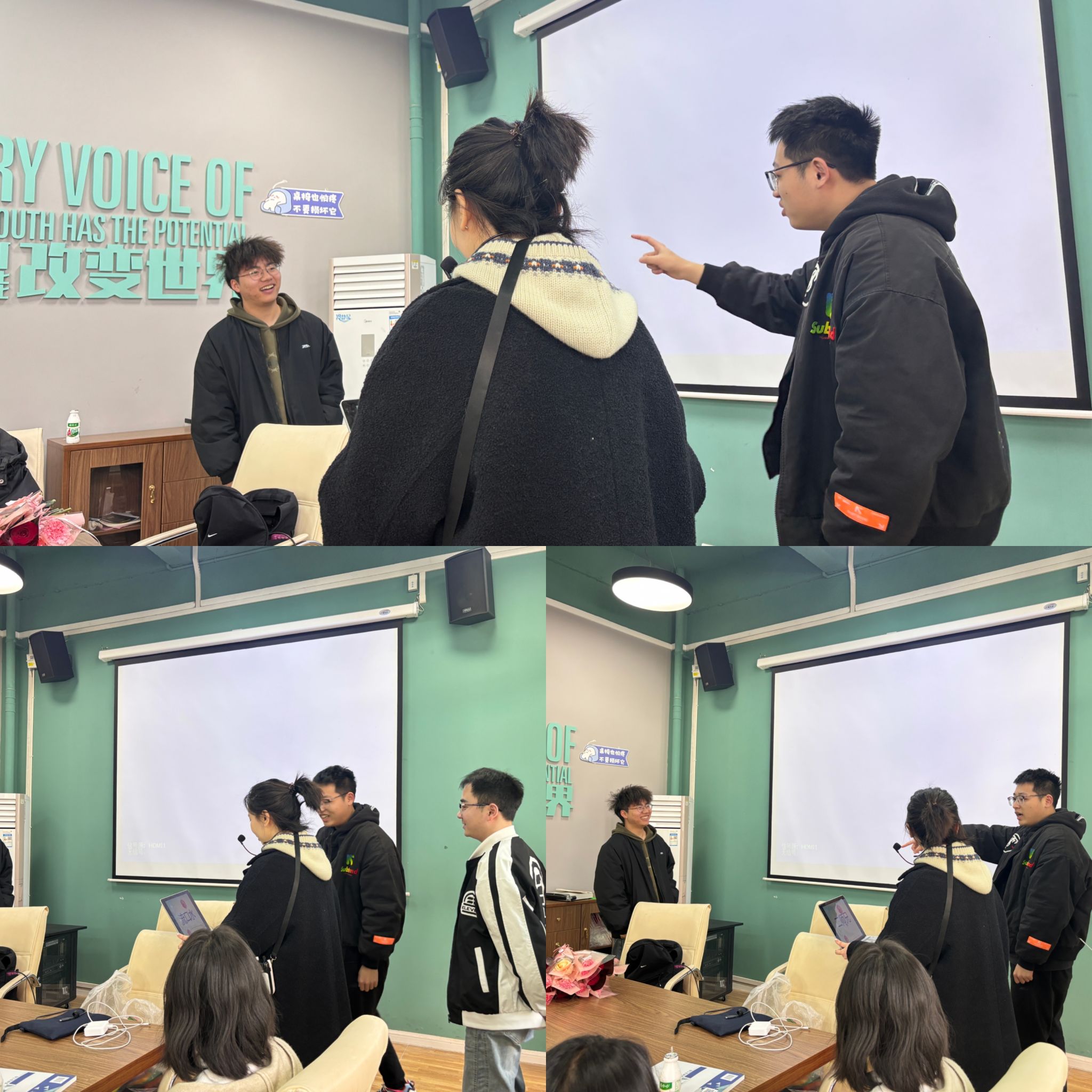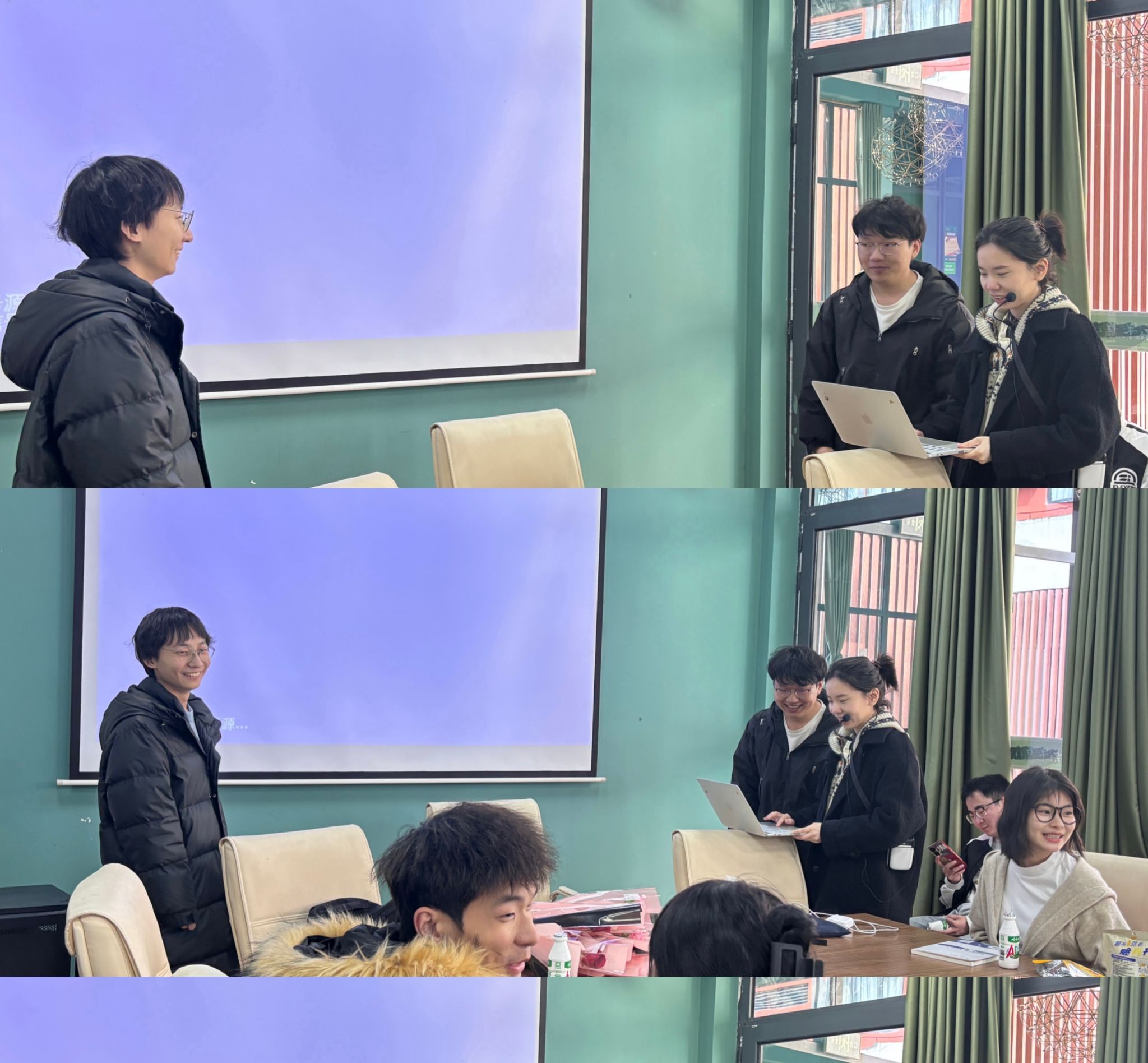 见面会开场,唐杰导师简要回顾上学期活动,与同学们一同展望本学期的计划 。紧接着,便是全场参与的“你划我猜”游戏环节。各小组派出两名代表参赛,比划的同学使出浑身解数,用夸张又形象的动作传递信息;猜词的同学则全神贯注,思维飞速运转。现场欢笑声、惊叹声此起彼伏。