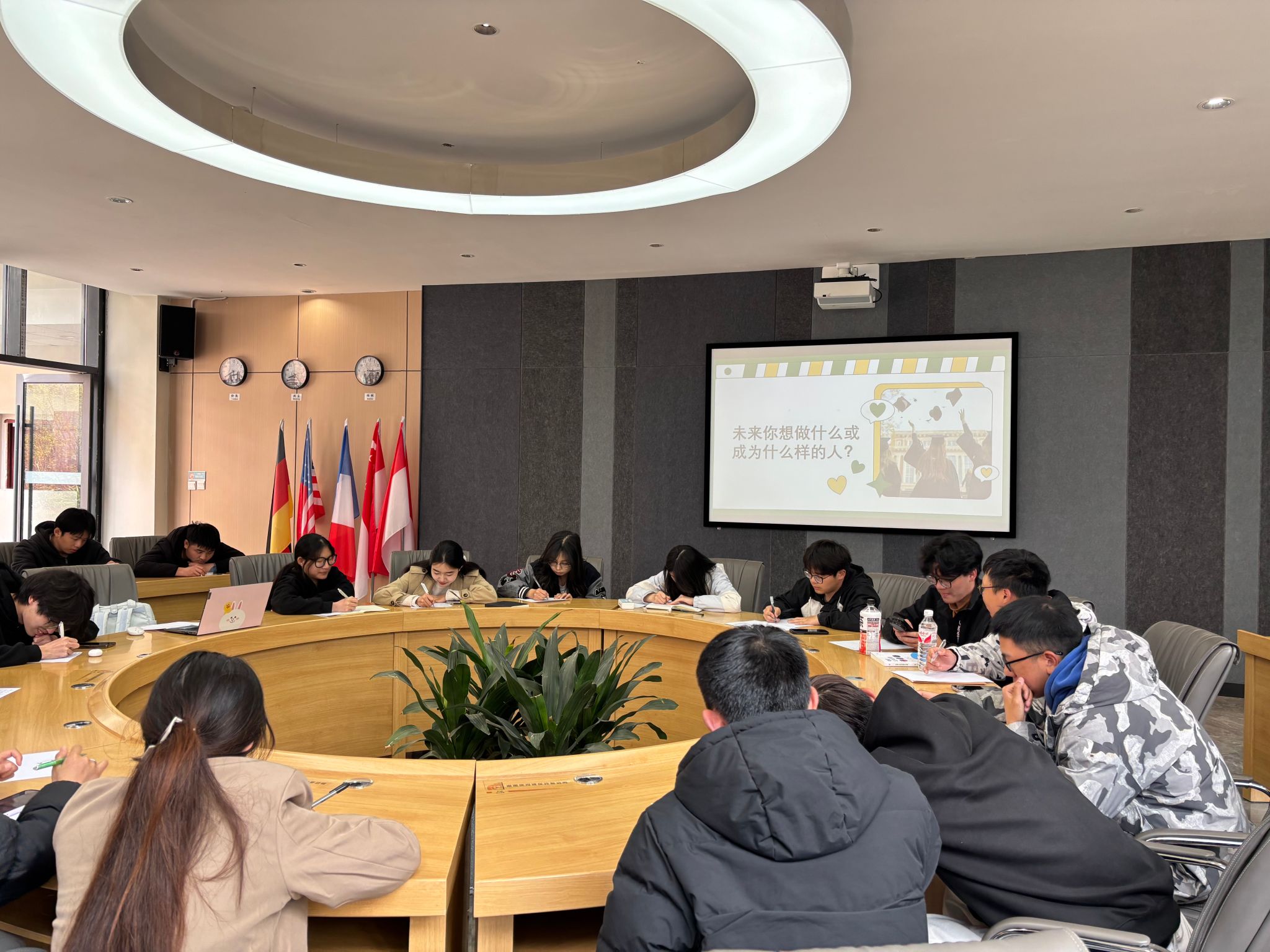 在陈飞宇老师的热情开场下,同学们迅速投入到紧张而充实的规划过程中。活动首先通过一段引人入胜的视频,激发了同学们对青春和未来的无限憧憬。视频中,一幕幕青春奋斗的场景跃然眼前,让在场的每一位同学都感受到了青春的蓬勃朝气和无限可能。紧接着,活动进入了核心环节。同学们积极参与,纷纷拿起笔,认真思考后写下了自己大学四年最想完成的三件事,并在深度思考后对这三件事进行了排序。这个环节旨在帮助学生明确自己的目标和优先级,学会合理规划时间和资源。有的同学希望能在学术上有所建树,发表高水平论文;有的则想积极参与编程比赛,积累宝贵经验;还有的希望能够在大学期间找到真正热爱的事业方向,为未来的职业生涯打下坚实基础。