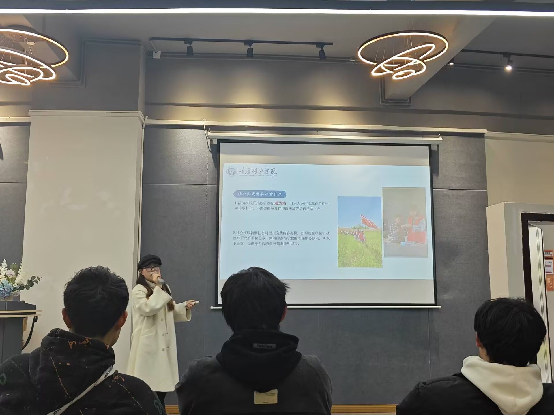 张淋炫老师还重点解读了档案内容的真实性要求。她结合典型案例说明,实践内容需真实反映活动经历,如参与“三下乡”需附实践照片、单位盖章等佐证材料,而讲座、献血等需明确标注为“非实践类活动”。此外,她提醒学生注意“志愿者活动”与“社会实践”的界定标准,避免记录混淆。