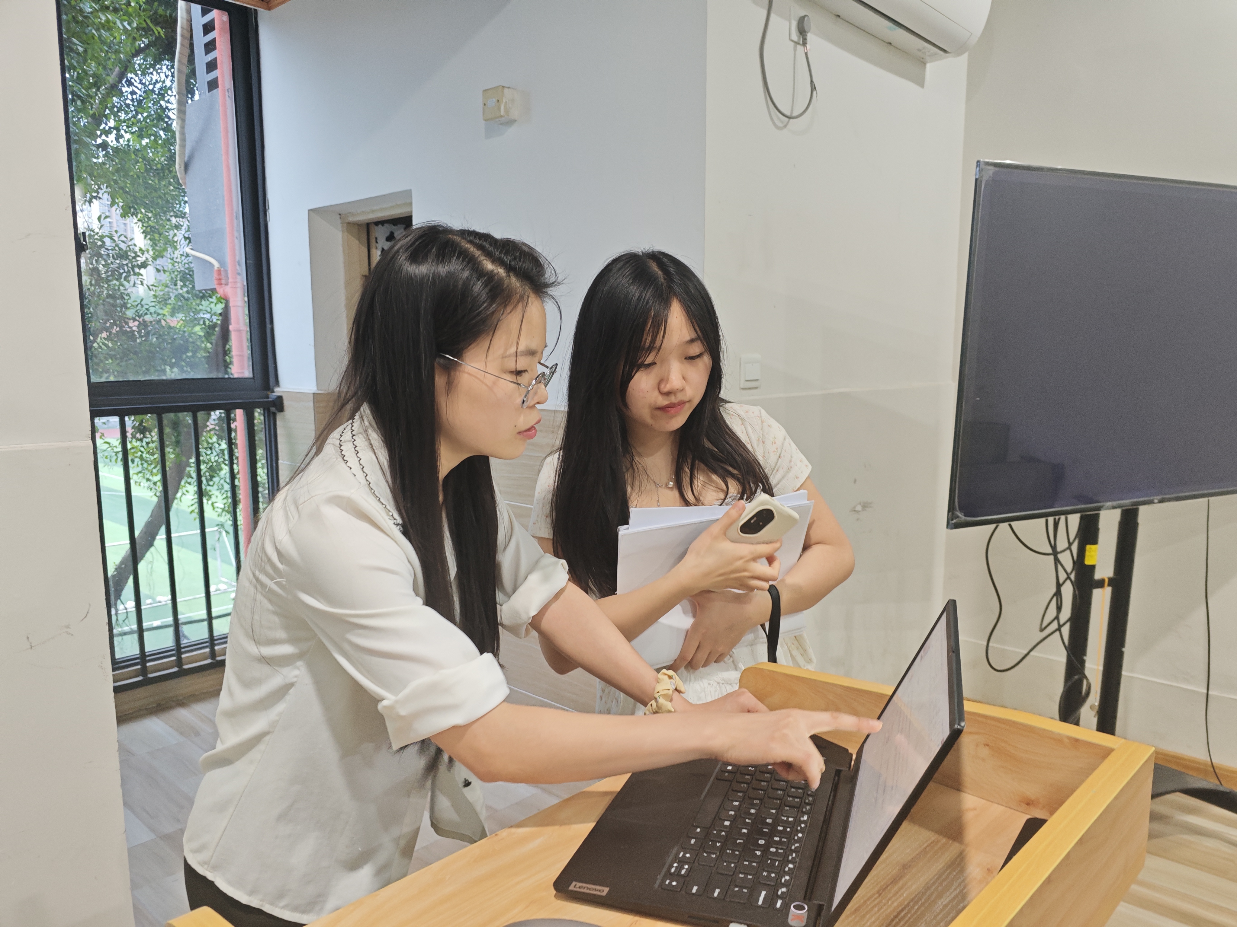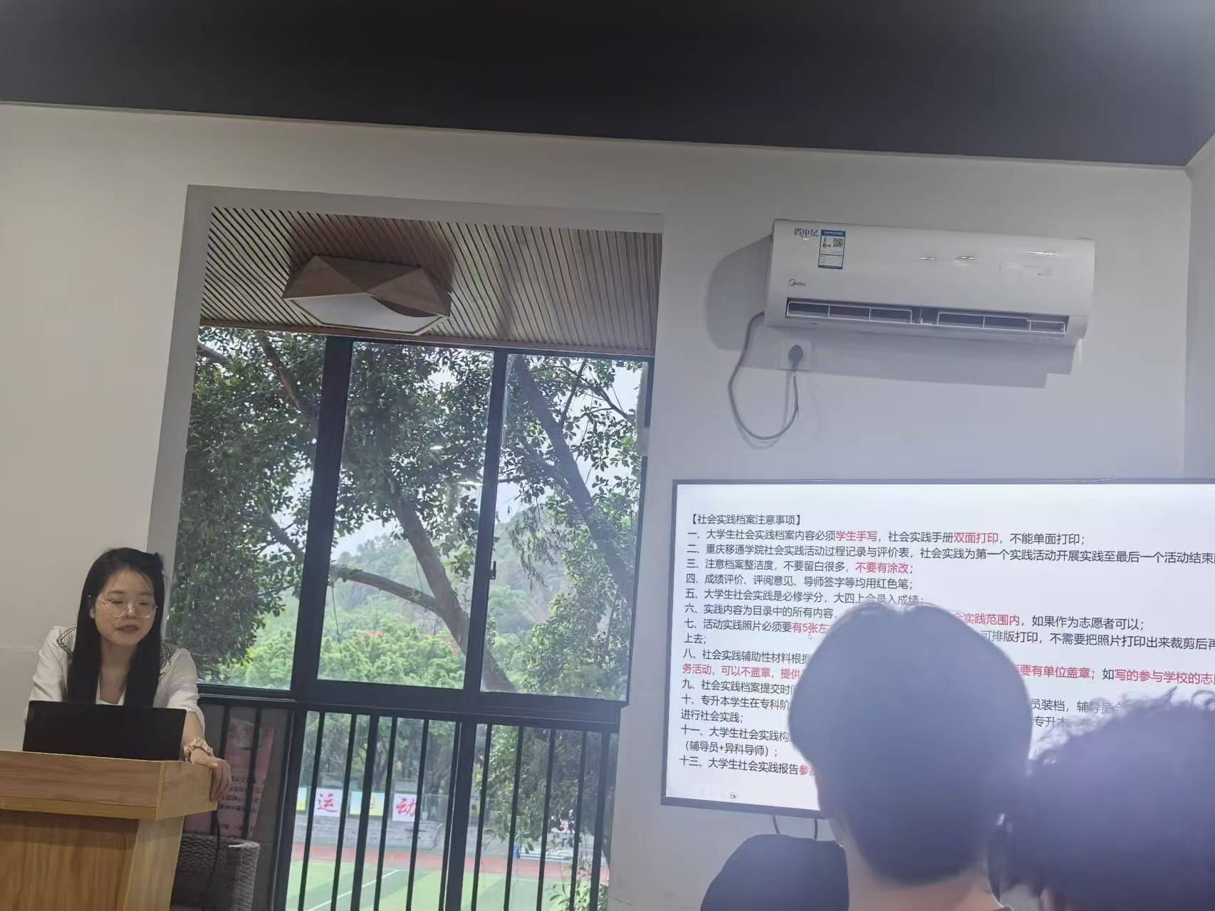 在答疑环节,同学们针对实践活动课时认定、单位证明等提出了疑问,谭桂芳老师针对她们的疑问并结合学校社会实践要求一一进行了解答。
