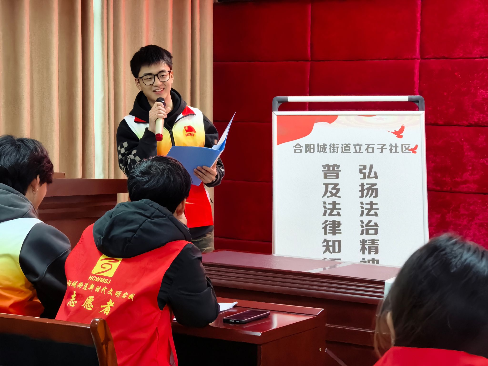 4月11日,通信与信息工程学院15名学生走进立世子社区,以“反诈宣传进基层,校社共治护平安”为主题,开展了一场别开生面的反诈宣传活动。活动由通信与信息工程学院学生张慧敏担任主持人,通过案例讲解、情景模拟、互动问答等形式,将反诈知识融入基层治理实践,助力居民提升防骗意识。