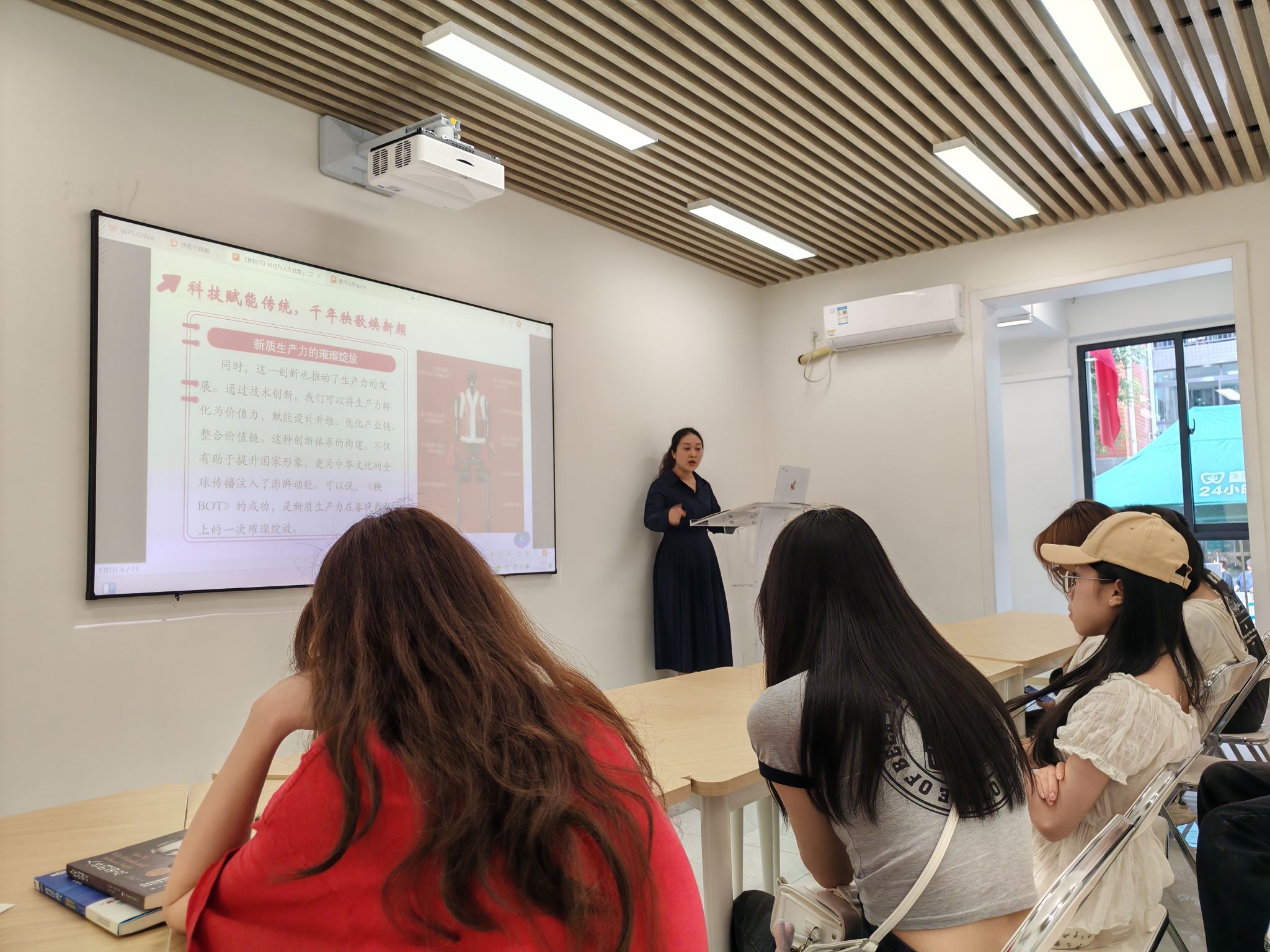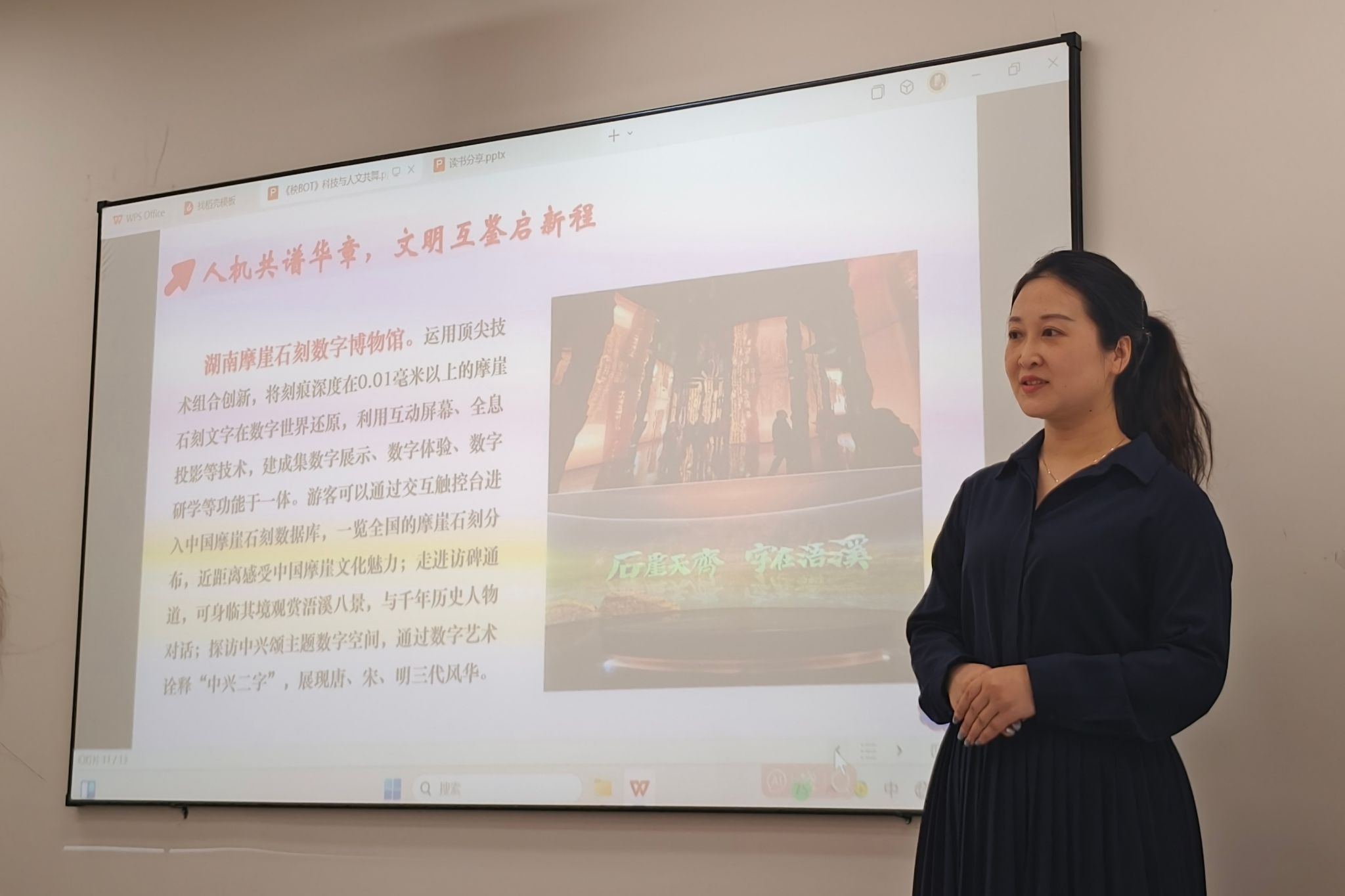 活动开始,何林老师领着同学们沿着三个维度展开这场文化解码:首先是技术赋能带来的文化新生,其次是人文关怀铸就的价值内核,最后是文明互鉴指引的未来图景。何老师讲到当智能算法遇见非遗秧歌,看似对立的二者实则在进行一场跨越时空的对话:一边是用激光扫描仪丈量文化肌理,一边是用机器学习预测艺术脉搏;一边是数字技术对文化精髓的精准保存,一边是当代语言对传统表达的创新重构。科技绝非冰冷的工具,而是让文化DNA在新时代完成转录与表达的催化剂,从而助力传统艺术在新时代的土壤中生根抽芽。这种创新更催生出文化生产力的升维跃迁。《秧BOT》的成功实践构建起“技术创新—产业升级—价值转化”的完整生态链。据最新数据显示,节目播出后相关技术已应用于12个非遗项目的数字化保护,带动产业规模突破8.7亿元——这正是新质生产力在文化领域的生动诠释。