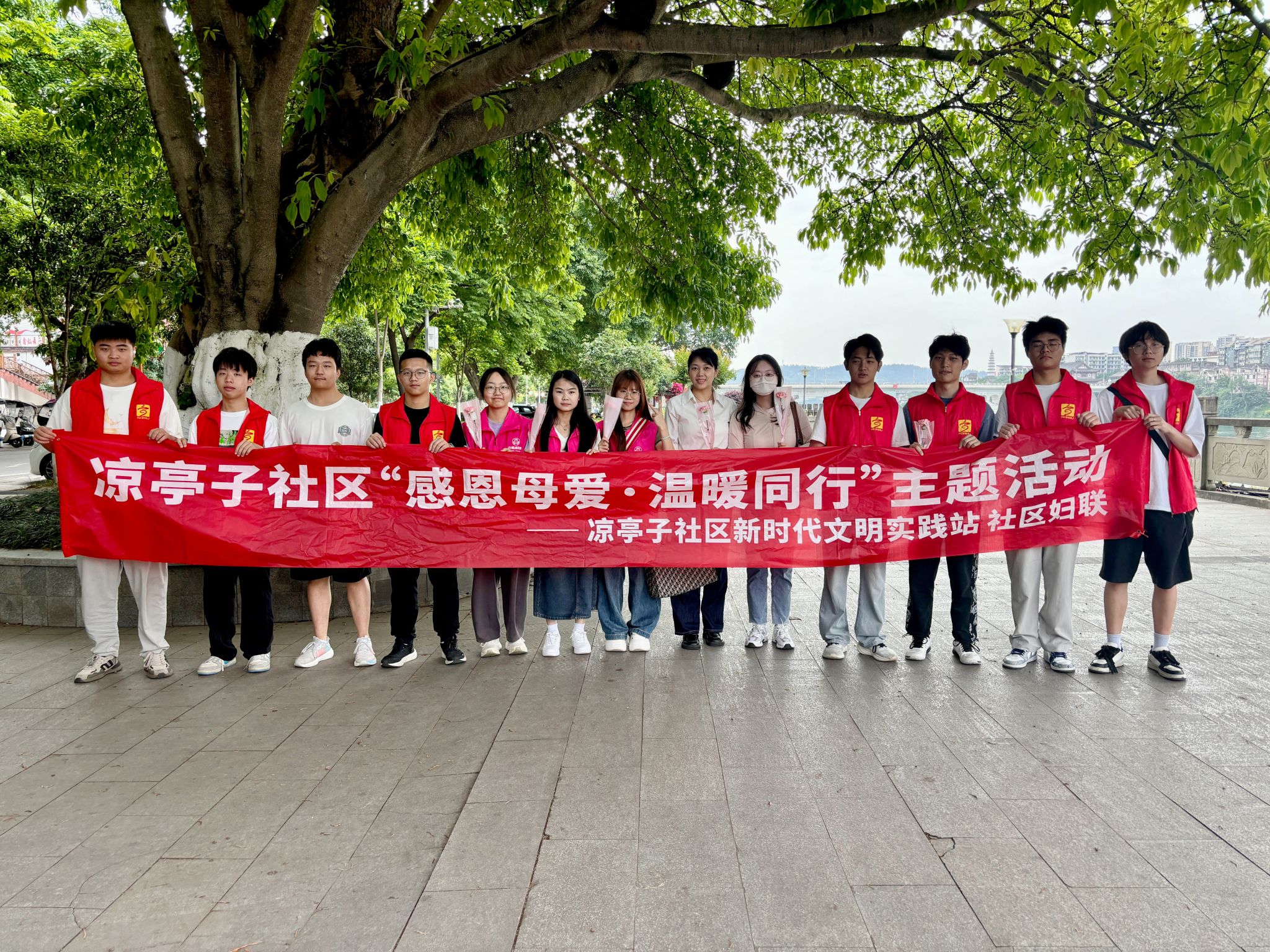5月9日早上九点,异科导师陈飞宇、潘燕共同带领学生去到合川区凉亭子社区开展“感恩母爱,温暖同行”户外志愿服务活动。师生们以朴实行动为社区母亲们打造专属节日场景,在布置、拍照、助老的细节中,让感恩之情浸润每一个平凡瞬间。