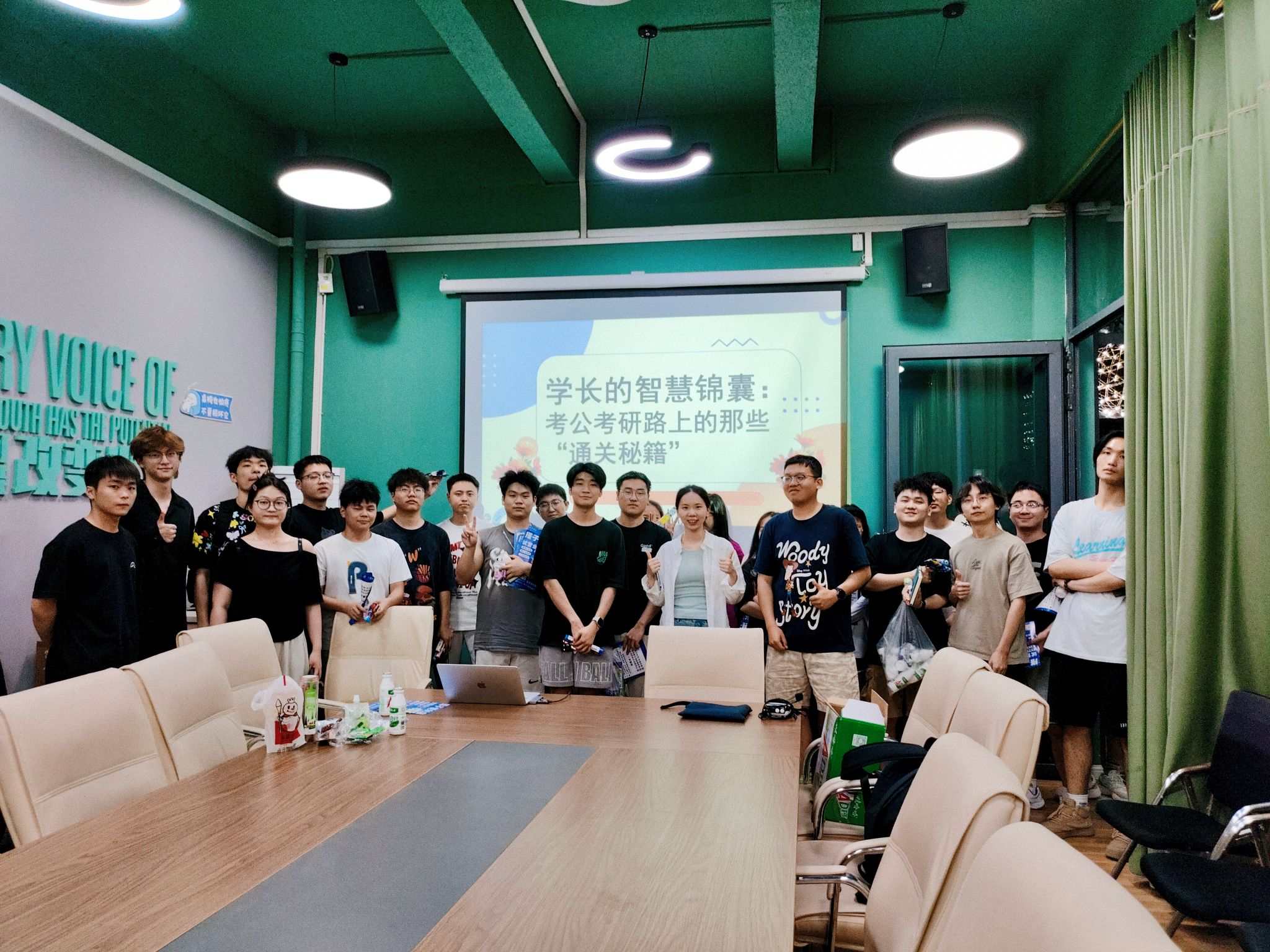 随后,赵政学长结合自身经历,详细介绍了考公流程、选岗技巧及各科目备考策略。他强调,考公需关注时政热点,注重日常知识积累,提升综合分析与问题解决能力。他还提醒同学们,备考中难免会心态崩溃,此时找志同道合的伙伴相互鼓励、并肩作战,能有效缓解压力、提升效率。此外,可通过运动释放压力,切勿用游戏解压,以免上瘾。