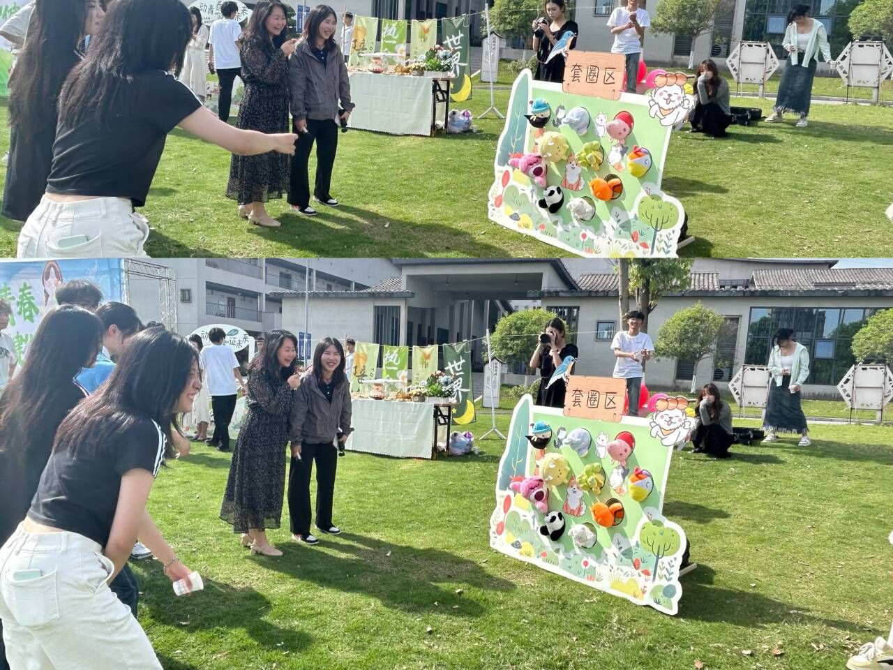 其中,套圈活动尤其受到大家的喜爱。同学们手持套圈,眼睛紧紧盯着目标,用力一扔,套圈在空中划出一道优美的弧线。有的同学一击即中,兴奋地欢呼起来;有的同学则与奖品擦肩而过,但也不气馁,继续尝试。