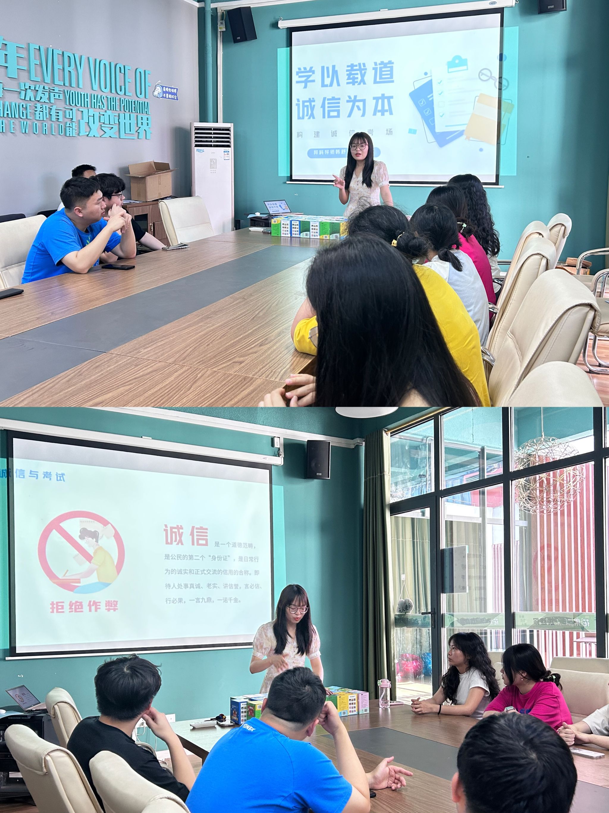 随后,韩舒臣老师以“学以载道,诚信为本”为题作诚信教育。她指出,学习不仅是知识积累的过程,更是品德塑造与价值观培育的重要途径。考试中的诚信,是衡量个人品德的关键标准,是不容逾越的行为底线。韩老师告诫同学们,应踏实复习、认真备考,凭借自身实力迎接考试,坚决杜绝任何作弊行为。她期望同学们将诚信理念铭记于心,在学业和人生道路上坚守初心,行稳致远。