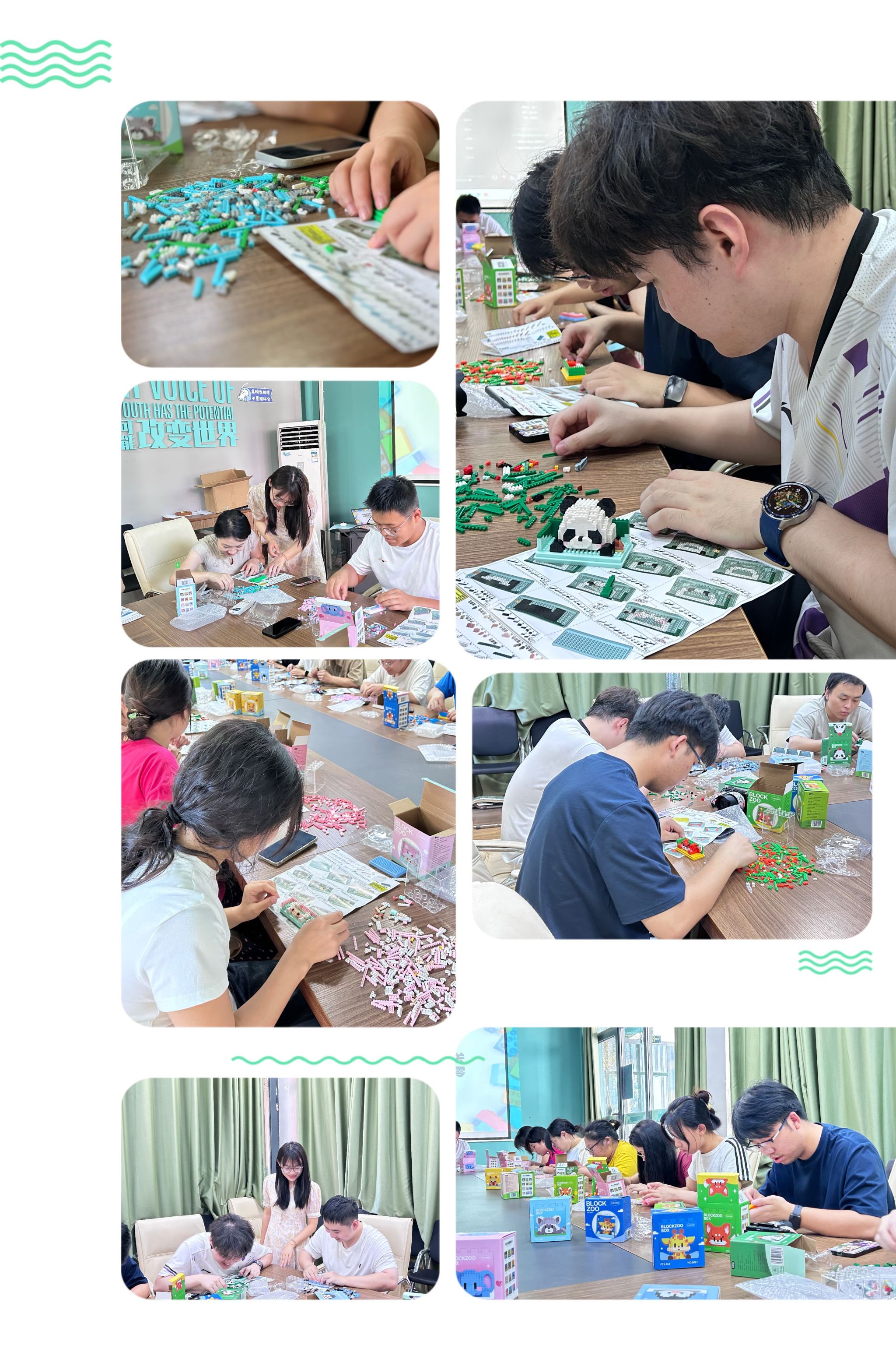 本次活动的最精彩是充满趣味的拼积木环节。老师与同学们一同动手,将零散积木拼接成创意造型。过程中,大家充分发挥想象力,相互交流协作,现场气氛热烈融洽。原本因期末复习而紧张的氛围,在积木碰撞声与欢笑声中悄然消散。很快,一个个造型独特、创意十足的积木作品诞生,同学们纷纷展示成果,脸上洋溢着满满的成就感与喜悦之情。