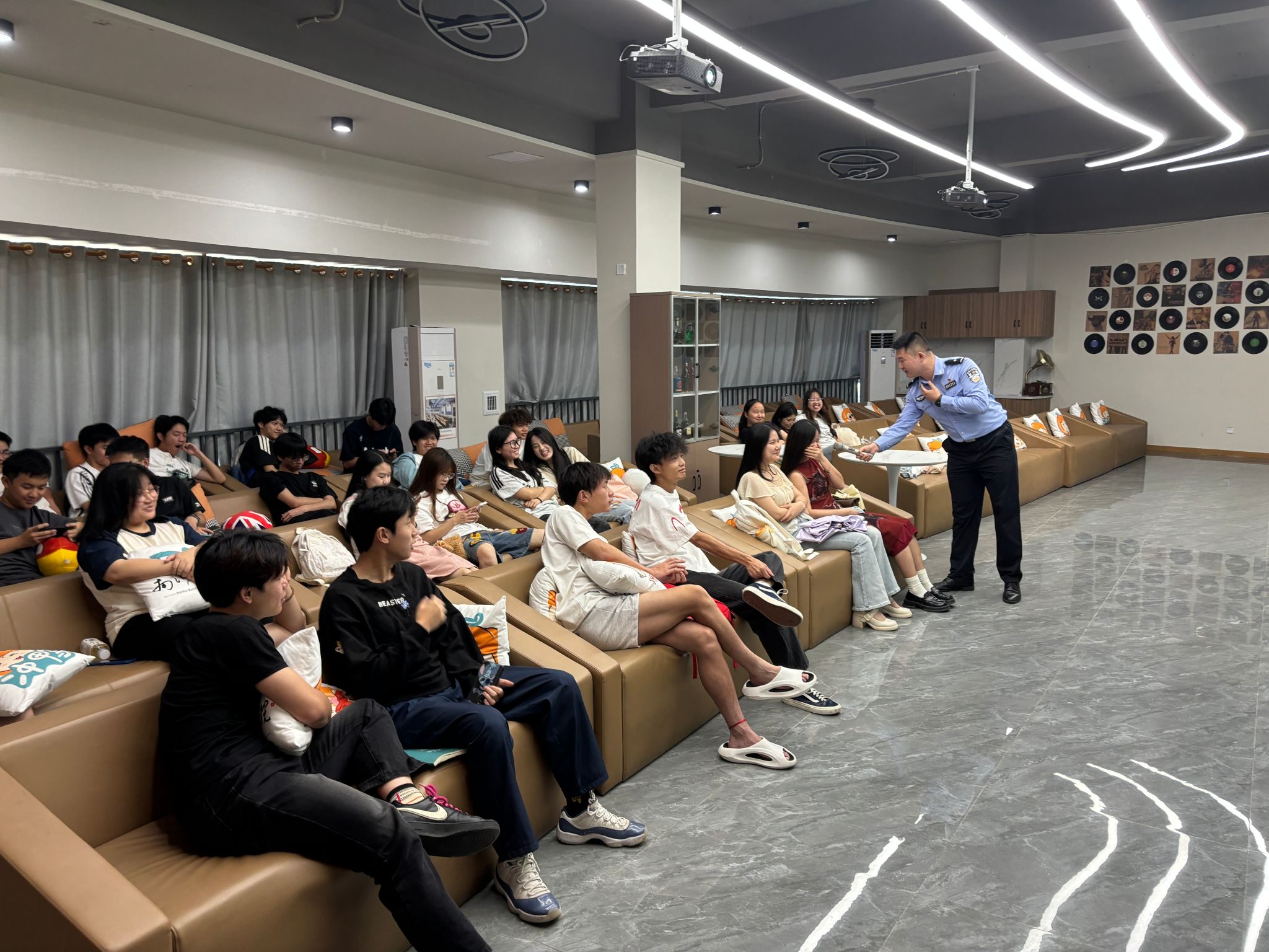 活动伊始,何警官结合自身丰富的基层工作经验,为学生们列举了发生在我们身边的网络贷、裸贷、杀猪盘、兼职刷单等金融诈骗活动,通过一个个真实案例,深入剖析了诈骗分子的作案手法和特点。何警官强调:网络贷看似方便快捷,实则暗藏陷阱,一旦陷入,就可能背上沉重的债务,甚至影响个人征信,未来贷款买房、买车都会受到限制。兼职刷单也是一种常见的诈骗方式,千万不要被高额的回报所迷惑,要时刻保持清醒的头脑,记住“天上不会掉馅饼”。同时,何警官还提醒同学们不要超前消费、借贷消费。要树立正确的消费观念,量入为出,假期找兼职的时候要多方核实商家信息,通过正规渠道寻找兼职工作,避免上当受骗。