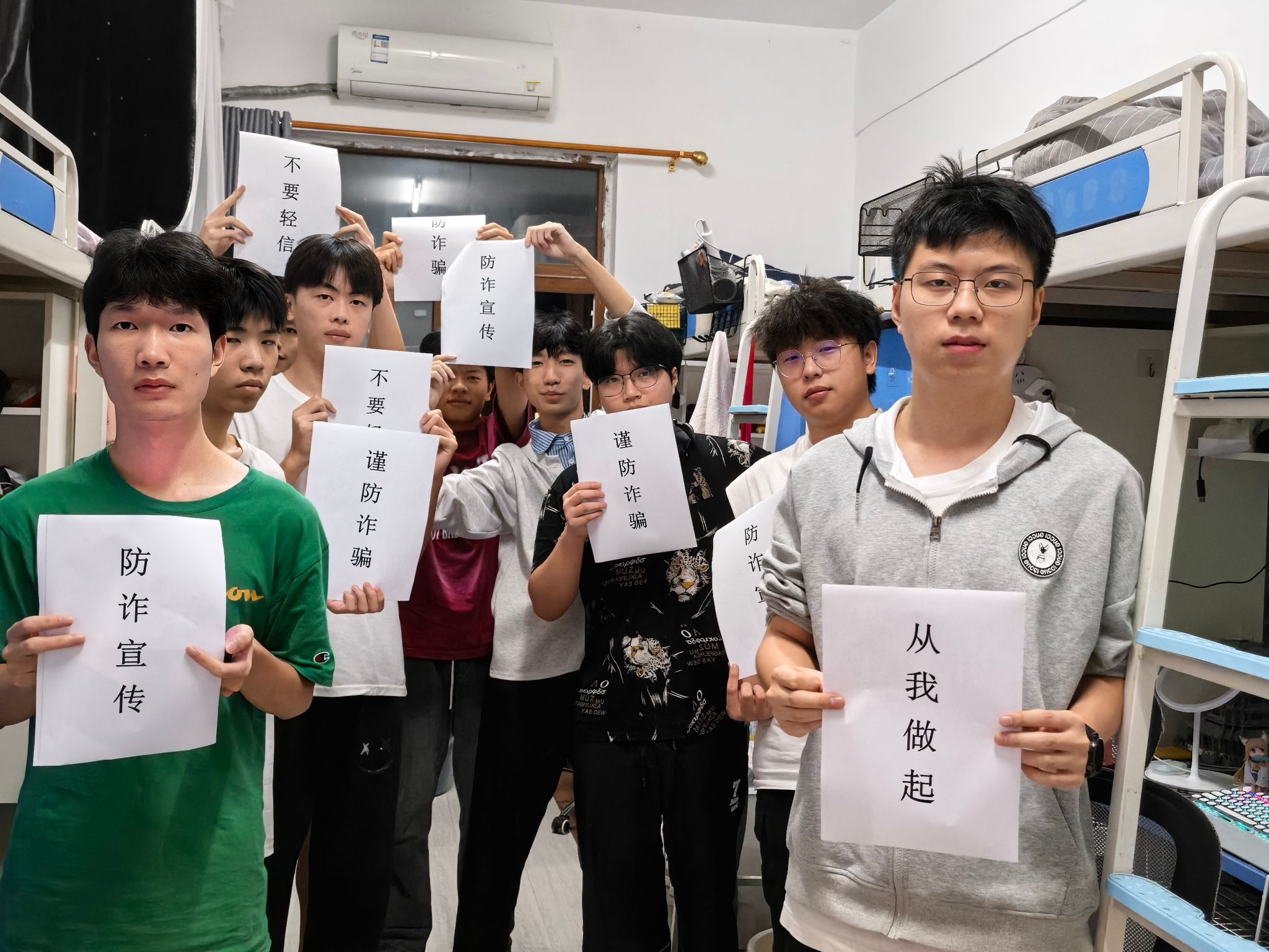 为进一步提升学生的防诈骗意识和自我保护能力,有效遏制校园诈骗案件的发生,切实保障学生的财产安全,异科导师皇淞2025年9月24日开展寝室+教室防诈骗宣传活动。