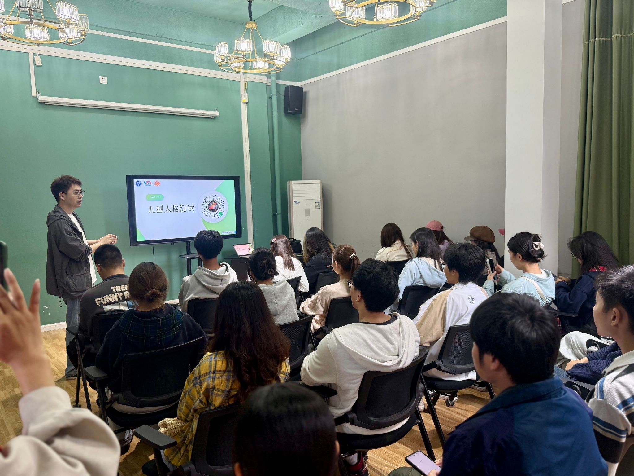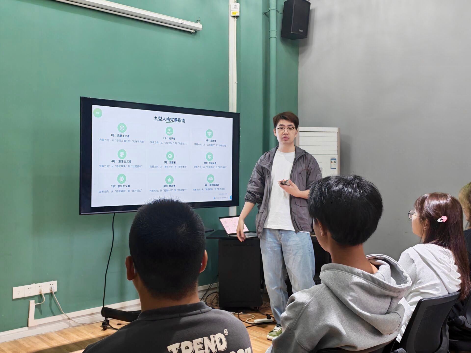 为帮助大学生在人格塑造的关键阶段缓解心理压力、提升恋爱中的自我认知与情感管理,10月17日,花果书院演讲培训室成功举办了“解锁恋爱人格密码,探索完满恋爱人格”活动。活动特别邀请陈颖老师,他以九型人格理论为基础,深入剖析了恋爱中的人格特点与成长路径,助力同学们构建健康且完满的亲密关系。