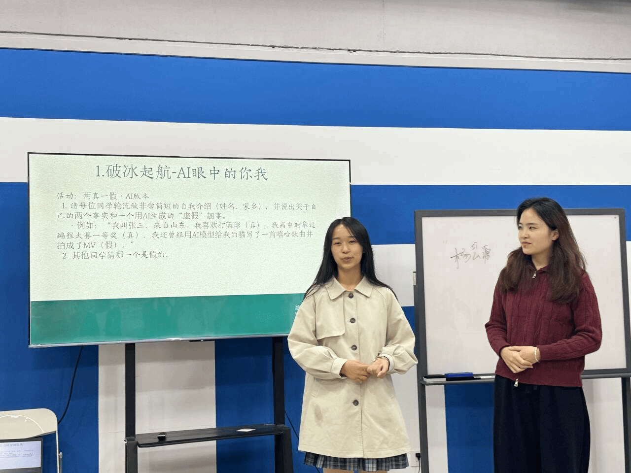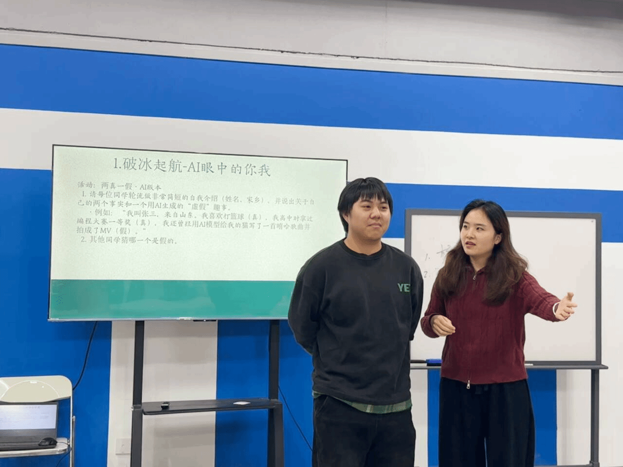 见面会伊始,一场名为“AI眼中的你我”的破冰游戏迅速拉近了彼此的距离。同学们在自我介绍中穿插由AI生成的“虚假”趣事,在欢声笑语的猜测中,不仅快速记住了彼此的姓名与特点,更将人工智能的元素巧妙融入交流,现场气氛轻松而热烈。