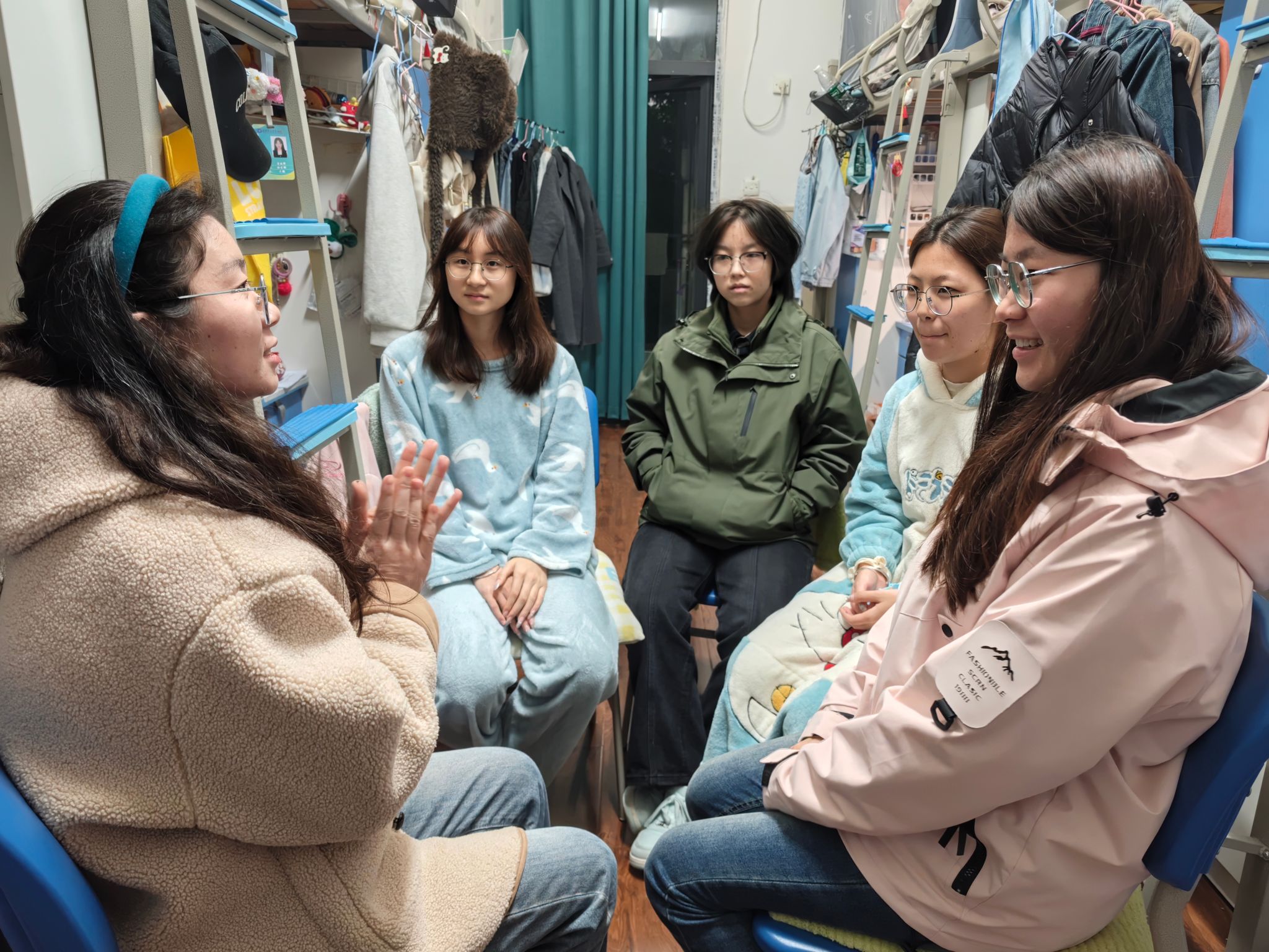 学业关怀,助力成长。走访过程中,吴红鑫老师首先聚焦同学们的学习情况。她耐心询问大家近期课程的学习进度、遇到的困难以及后半学期的学习计划。在了解到部分同学对课程中的一些知识点存在疑惑时,吴导师结合自身的学习经验,用通俗易懂的方式为同学们进行讲解,还分享了高效的学习方法和备考技巧。她鼓励同学们要合理安排时间,制定科学的学习计划,保持积极的学习态度,遇到问题及时与老师和同学交流。同学们感慨地说:“老师的讲解让我豁然开朗,她对学习的建议也让我更有信心应对各种考试啦。”
