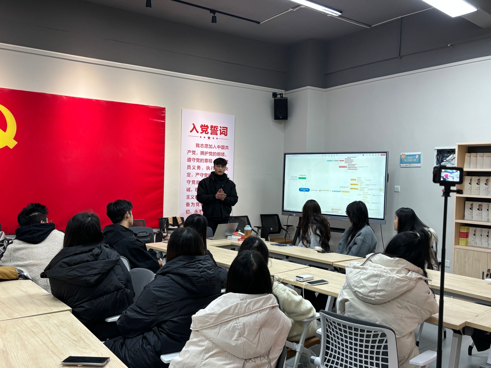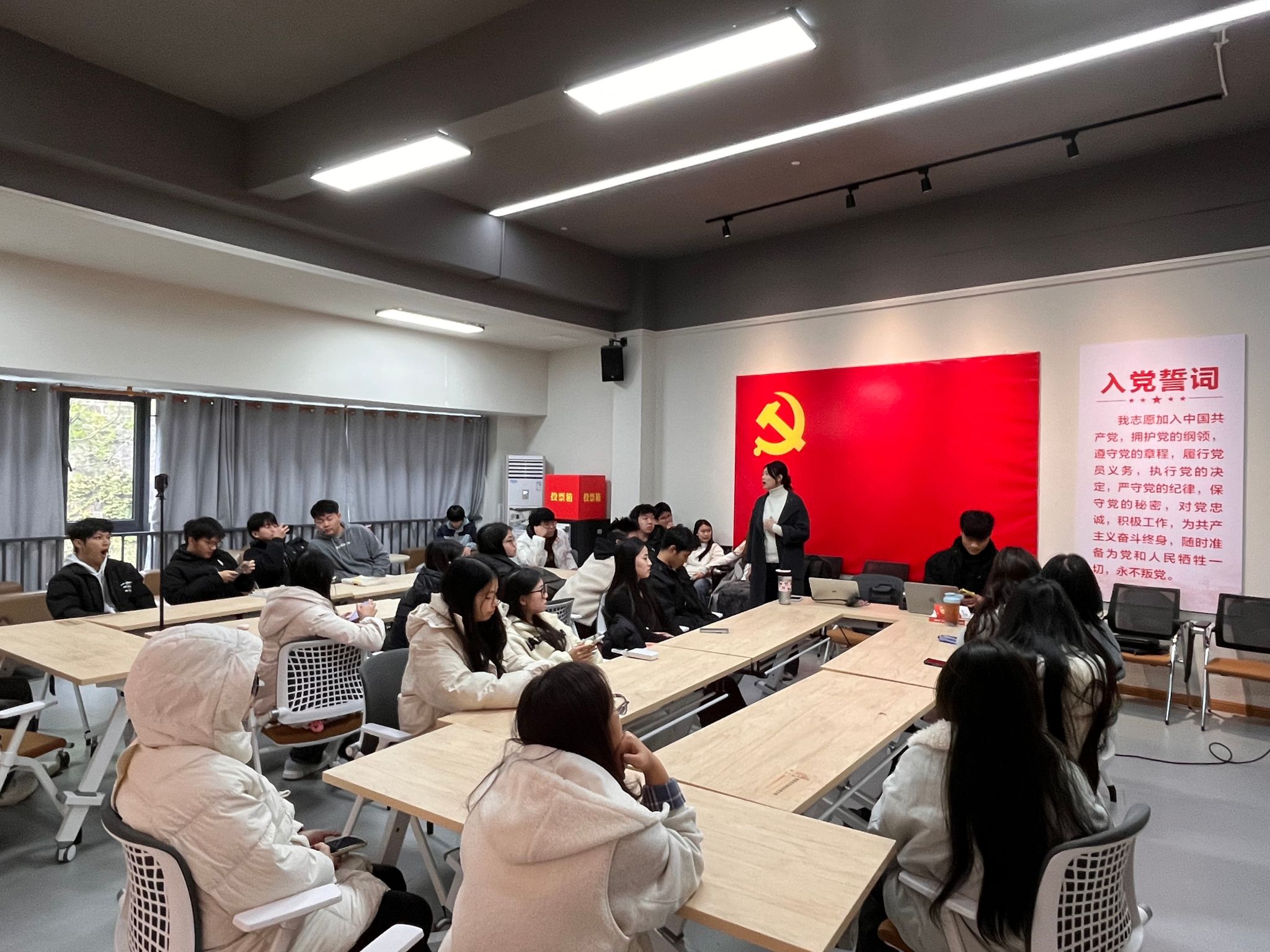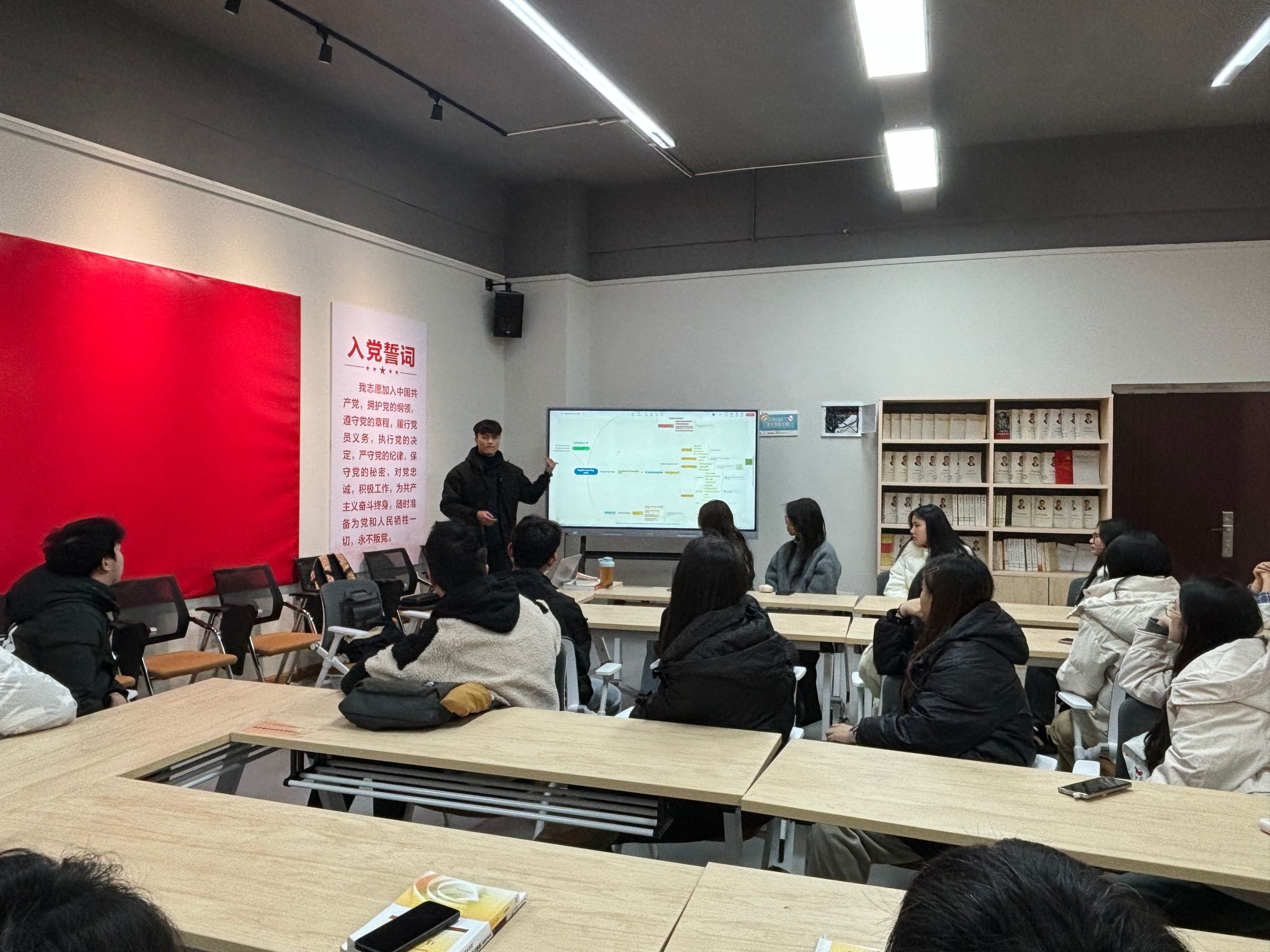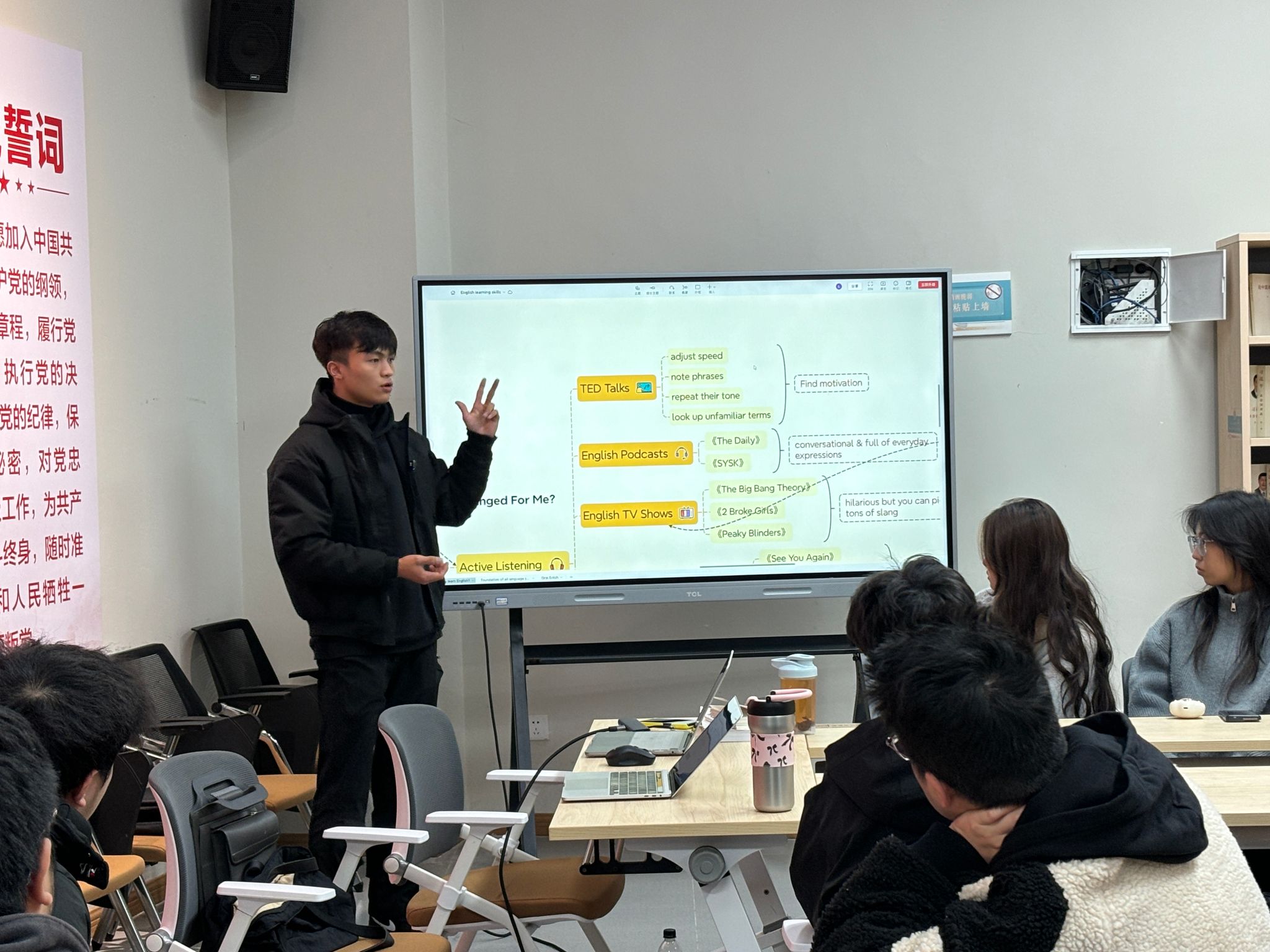 为助力同学们提升英语学习能力,掌握高效学习方法。11月19日下午一点,在南湖书院党团活动室,异科导师潘燕开展了英语学习经验分享会,并邀请了异科导师陈飞宇、李汶静、涂强三位老师及其学生共同参与此次活动。此次分享活动特邀2024级财务管理高本班的李柃潼来为同学们分享其英语学习的独到见解与实践经验,为在场学子带来一场干货满满的英语学习盛宴。李柃潼同学是英语学习领域的“多奖得主”,曾斩获2024“东方创新杯”全国英语阅读大赛二等奖、第四届“英语世界”全国大学生翻译大赛二等奖等多项殊荣。同时作为英语自媒体创作者,他在英语学习与实践融合方面有着丰富的探索。
