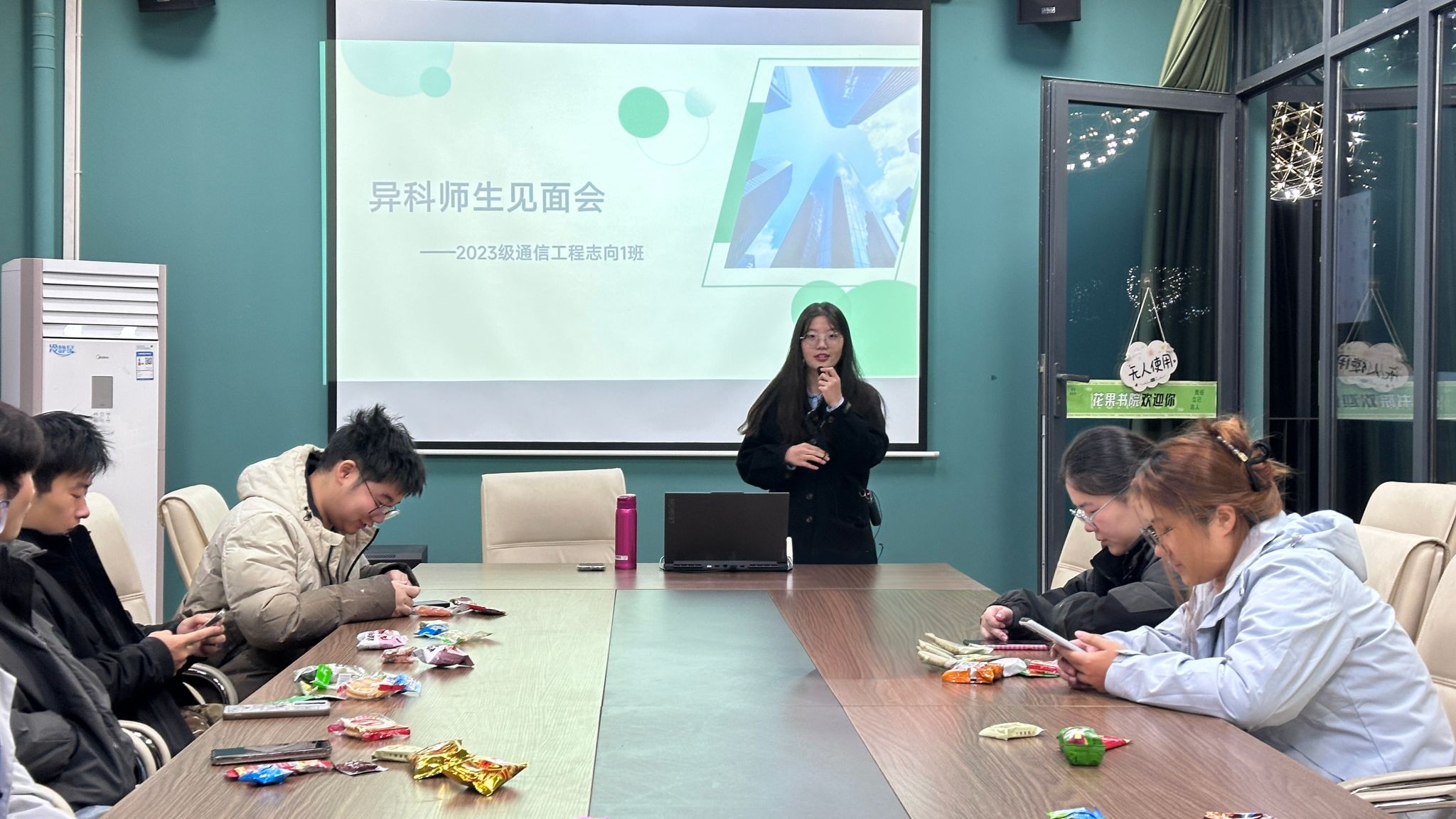 为帮助2023级通信工程志向1班学生更好地规划大学生涯发展,搭建师生交流平台,11月19日晚上,谭红异科导师小组成员在花果书院3号楼大型会议室开展了“大学下半场,绘制你的专属升级地图”主题见面会。本次活动围绕大学生涯规划、能力提升路径等话题展开深入交流,为后续异科导师工作的开展奠定了坚实基础。