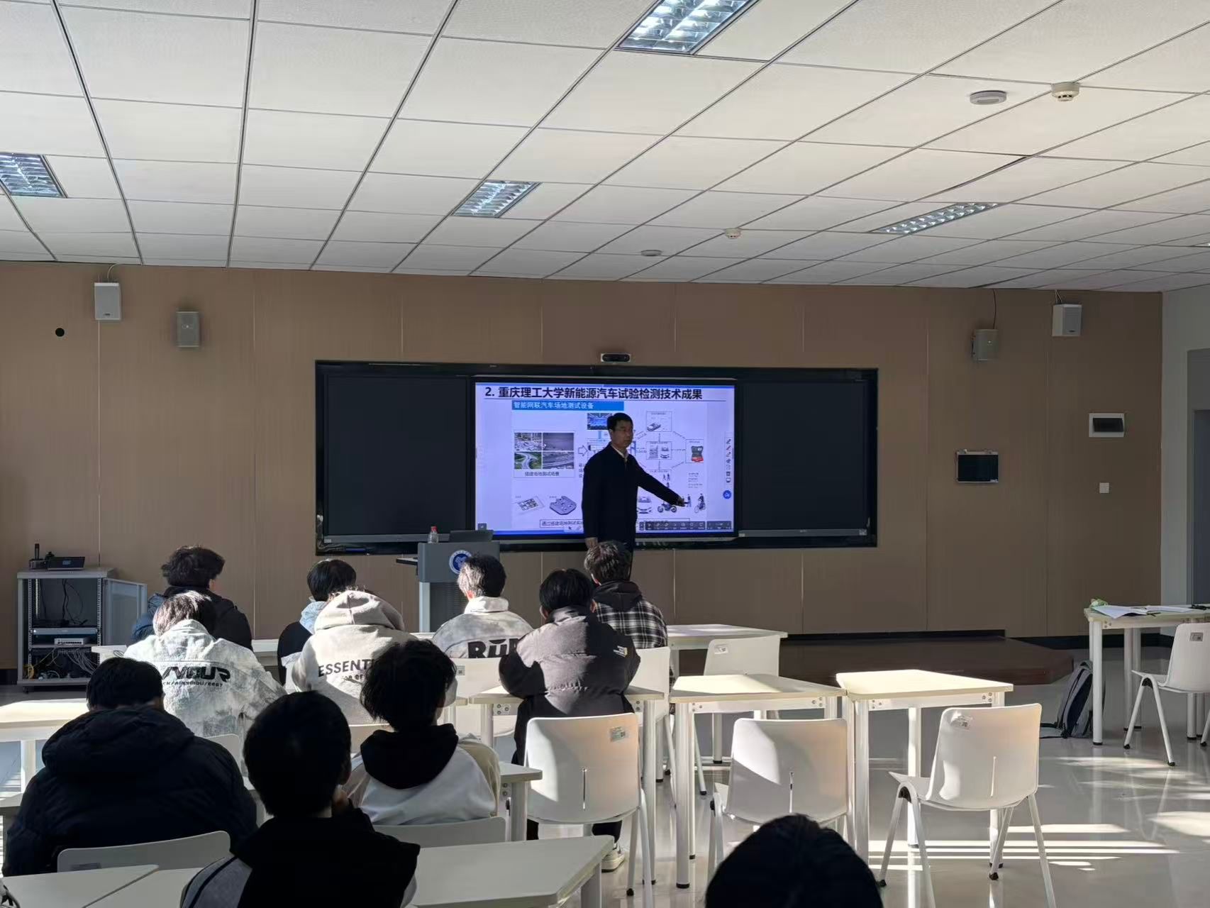 2025 年 11 月 19 日,重庆移通学院通信与信息工程学院 2025 级电子信息类 2 班的课堂上掌声雷动。通信与信息工程学院异科导师郝志宽主动链接行业优质资源,特邀重庆工程职业技术学院校长、党委副书记张志刚教授,以 “新能源汽车先进试验检测技术与装备” 为题开展专题讲座,将异科导师制 “跨学科引育” 的育人理念落到实处,为学子们带来兼具学术深度与行业视野的知识盛宴。