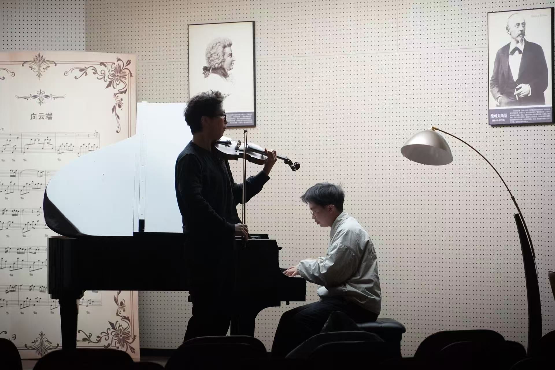 见面会在轻松愉悦的氛围中拉开帷幕。石权老师携小提琴与学生赵力宏共同演奏《特别的人》。熟悉旋律响起,小提琴的细腻婉转与钢琴的温润醇厚相得益彰。石权老师演奏娴熟灵动,赵力宏伴奏沉稳默契,灵动的音符传递出真挚情感,不少同学拿出手机记录下这温馨的瞬间,原本略带拘谨的氛围瞬间被暖意与欢笑取代。