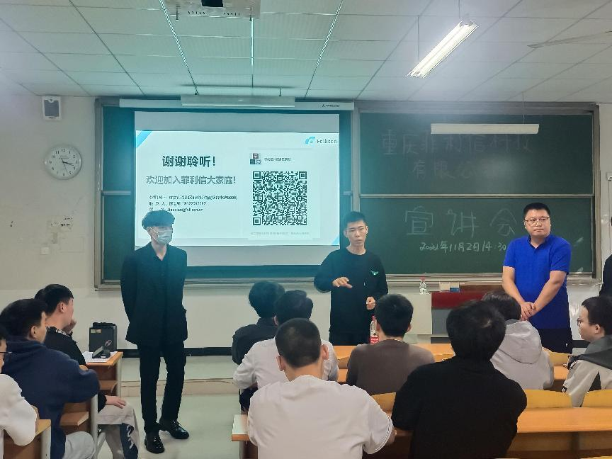 诚邀企业进校招聘,提供更多岗位选择。2022年11月2日14:00,通信与信息工程学院邀请重庆菲利信科技有限公司来到4105教室开展2023届毕业生专场宣讲招聘会。
