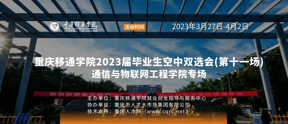 贯彻落实党中央、国务院“稳就业”“保就业”决策部署,进一步畅通就业渠道,为企业和高校毕业生搭建供需桥梁,助力高校毕业生实现更加充分和更高质量就业。重庆移通学校联合重庆人才网在线举行重庆移通学院2023届毕业生空中双选会(第十一场)-通信与信息工程学院。