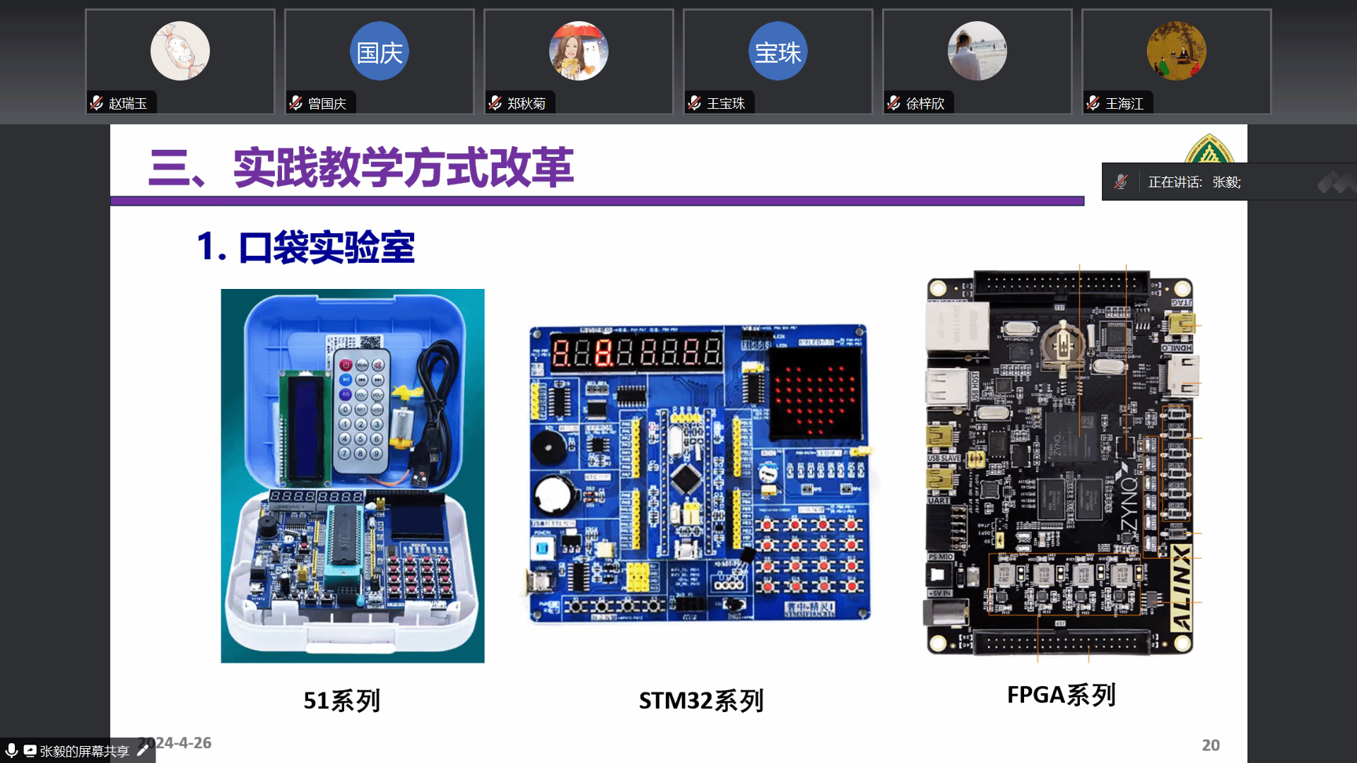 最后,大家就关心的问题与张教授进行了交流讨论。余晓玫老师就“开放性实验室建设”与张教授进行了交流讨论,张教授建议开放性实验室建设可以以两种方式实现:一是面向固定团队对应团队人员开放;二是开放固定实验室,匹配教务处课表,开放无课时间段,并安排人员值守。但是目前人员值守不方便,无法做到24小时随时开放,所以建议采用门禁监控,通过门禁二维码远程控制开门,并随时通过视频监控,时刻把控实验室内部具体情况。张媛老师就“当前独立实验教学系统改革,是否保留基础课程的随课实验,以及随课实验所占比例”与张教授进行了交流讨论。张教授表达了自己的看法,并表示,对于基础实验而言虚拟实验也必不可少,线下实验之前最好能让学生完成和理论知识同步的虚拟实验,理论讲到对应知识点时,则可以布置虚拟仿真实验作为课后作业,以此加强对理论知识的理解,同时为后续的线下实验打下基础。参会的其他老师也对实践课程体系的改革与创新纷纷表达了自己的看法。