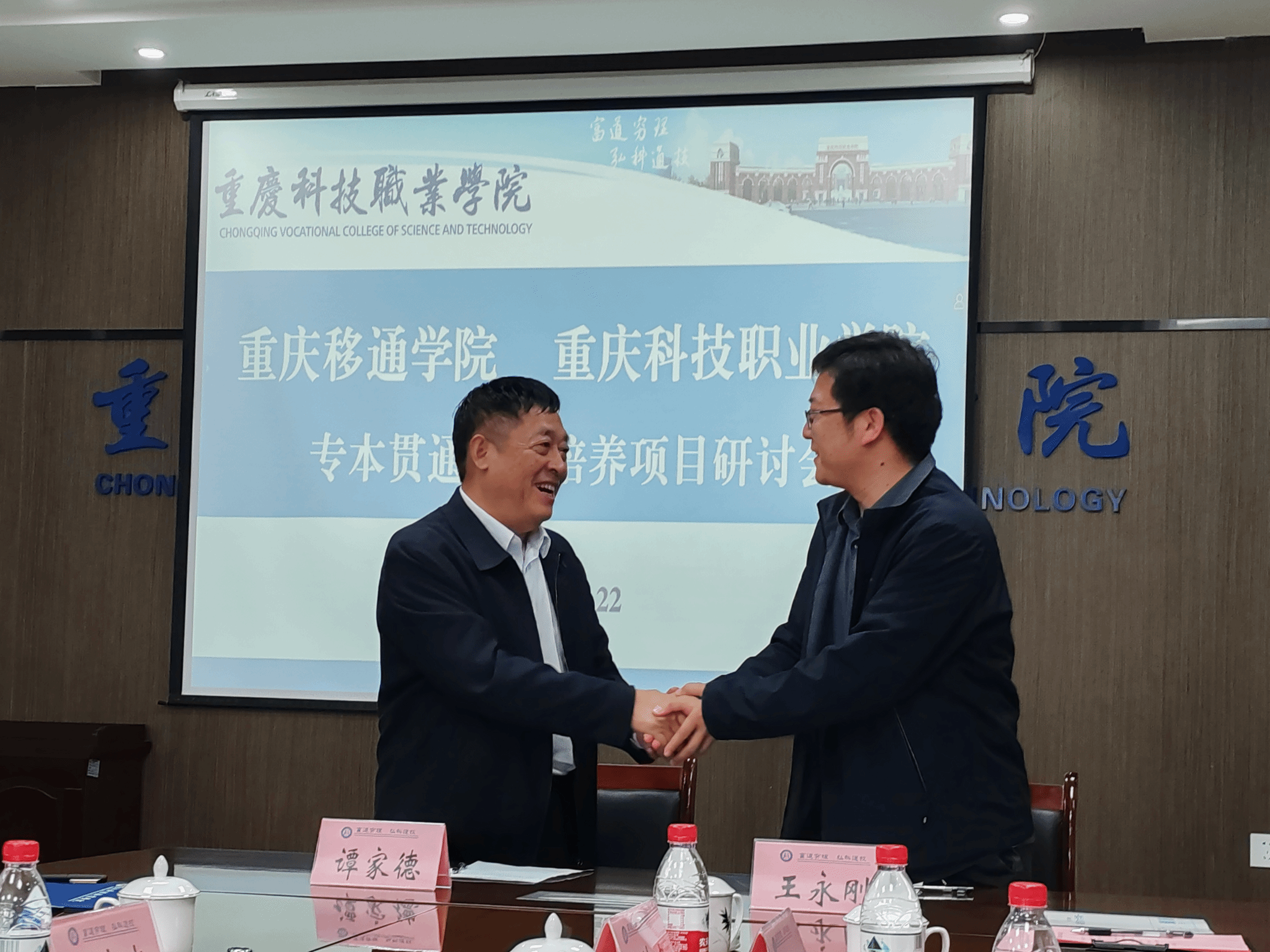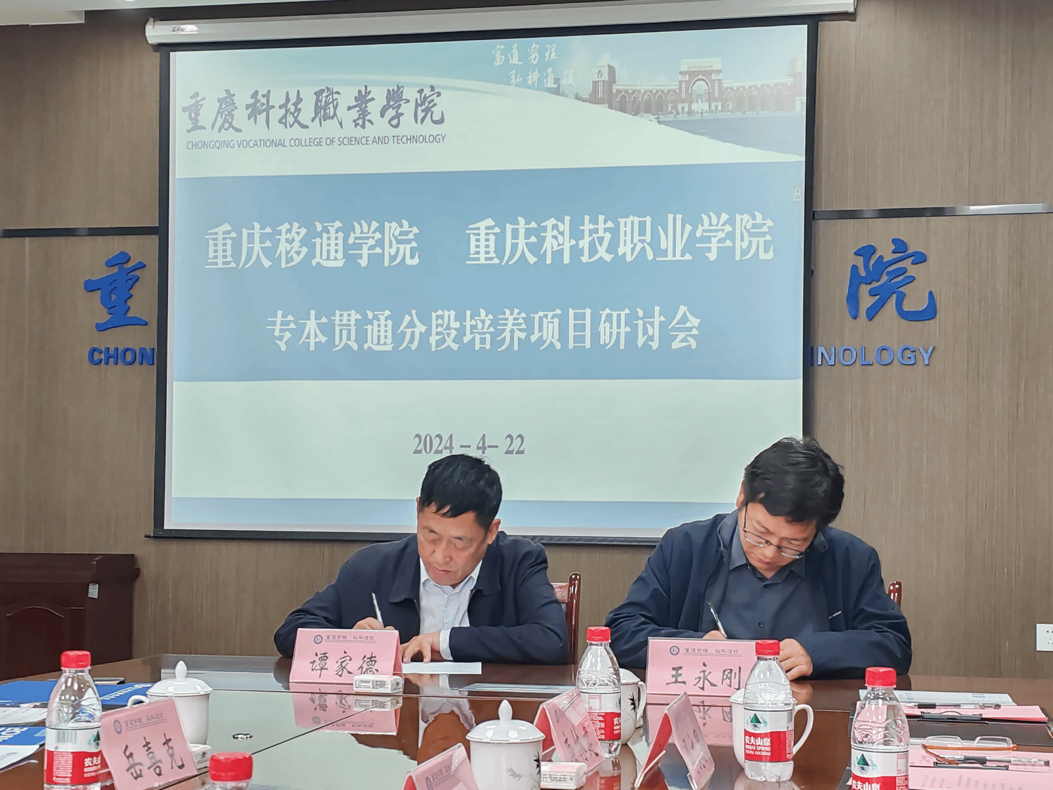 重庆科技职业学院教务处处长岳喜克和重庆移通学院教务处处长高飞,共同表示:要聚焦项目导向,构建理论与实践紧密结合的课程体系,充分利用双方优势资源,加大合作力度,共享教师资源,优化人才培养方案,建立健全多形式衔接、多通道成长、可持续发展的人才培养体系,助力学生不断成长。