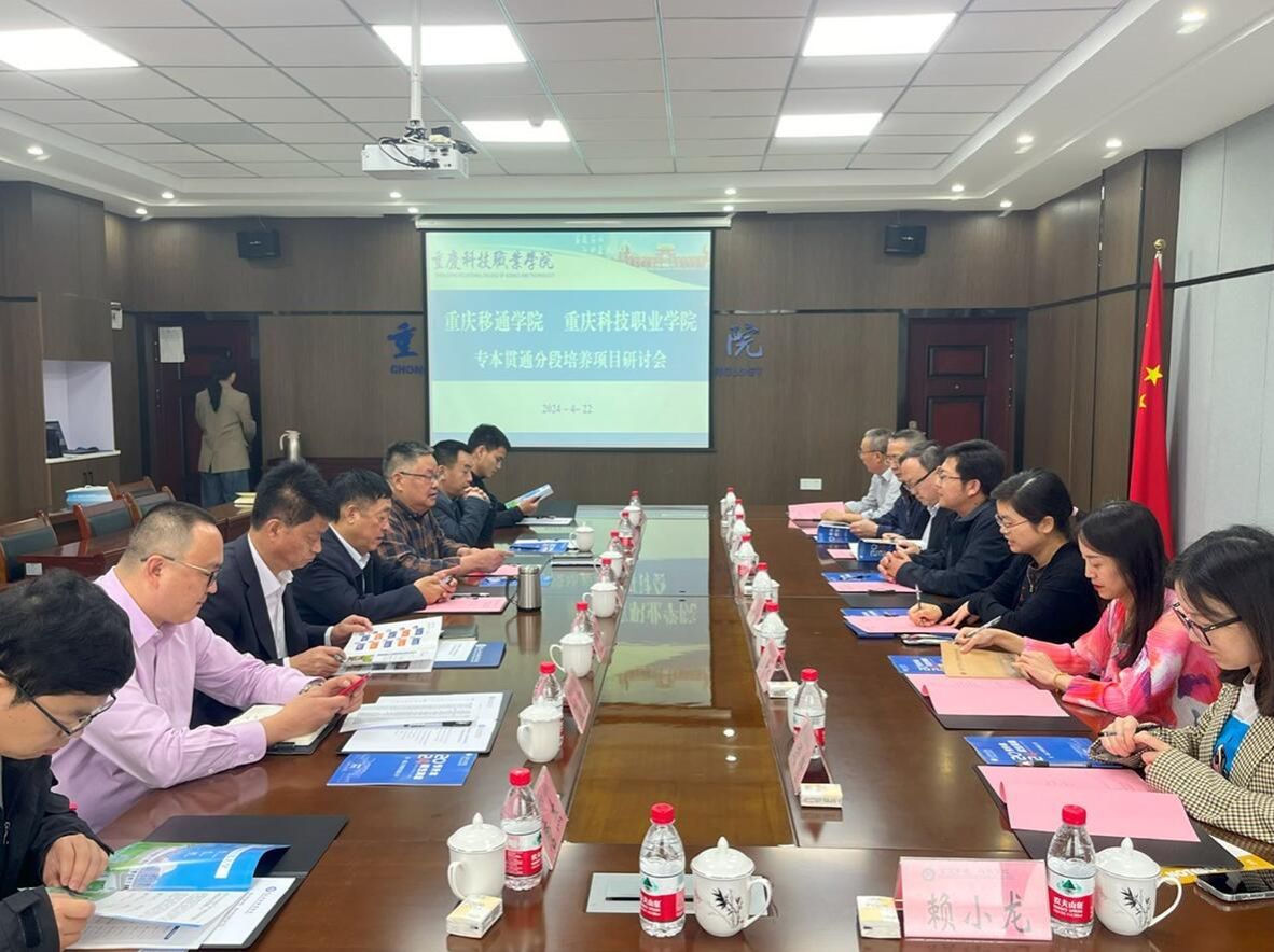 4月22日,重庆移通学院副校长王永刚、校长助理刘枚、教务处处长高飞、通信与信息工程学院院长李文娟、副院长唐林建、招生处办公室主任闫倩、智能信息技术教研室主任冯文果以及人工智能专业负责人赖小龙,一行访问了重庆科技职业学院,以深化双方在人工智能专业“3+2”专本贯通分段培养项目上的合作。重庆科技职业学院的校长谭家德、副校长孙焕良、副校长兼大数据与信息学院院长周贤君、教务处处长岳喜克、招生处处长孙凯、大数据与信息学院教务科长陈树林、智能控制技术专业负责人唐杰等热情接待,双方进行了深入的研讨。