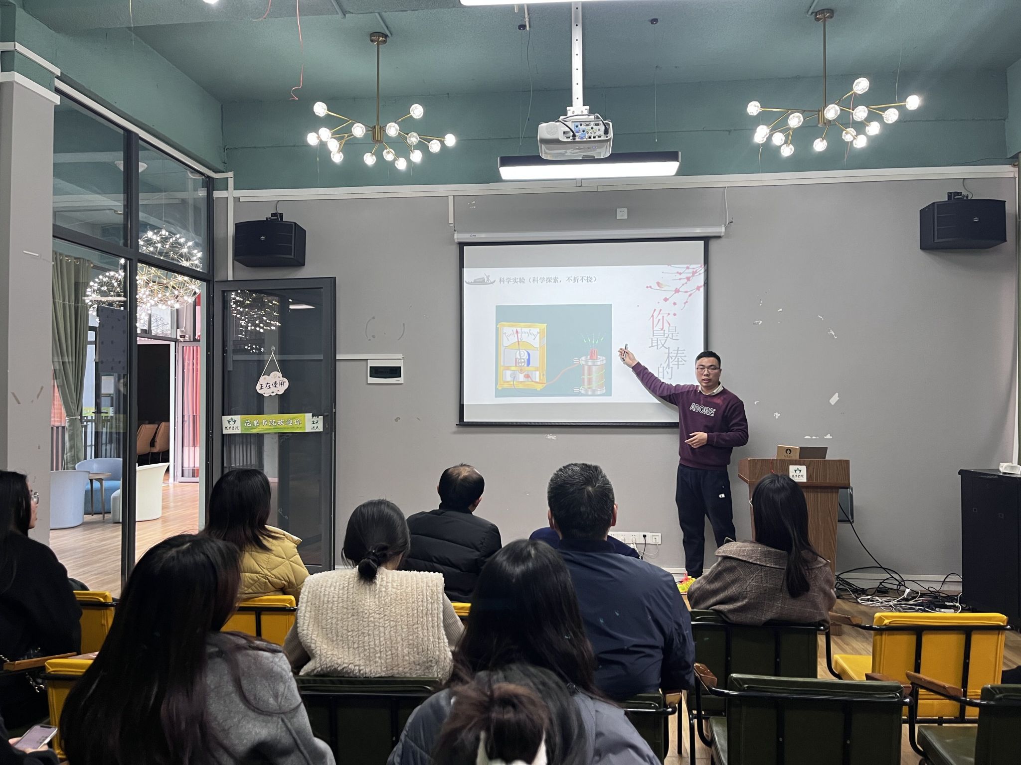 随后,张辉老师以法拉第电磁感应定律为例,通过混合式教学等方式将法拉第电磁感应定律与思政教育相结合,探讨科学发展与社会进步的关系,以及科学技术如何服务于国家和人民的利益,使在座师生在学习专业知识的同时,得到了思想政治教育的熏陶,使本次活动的主题得以升华。