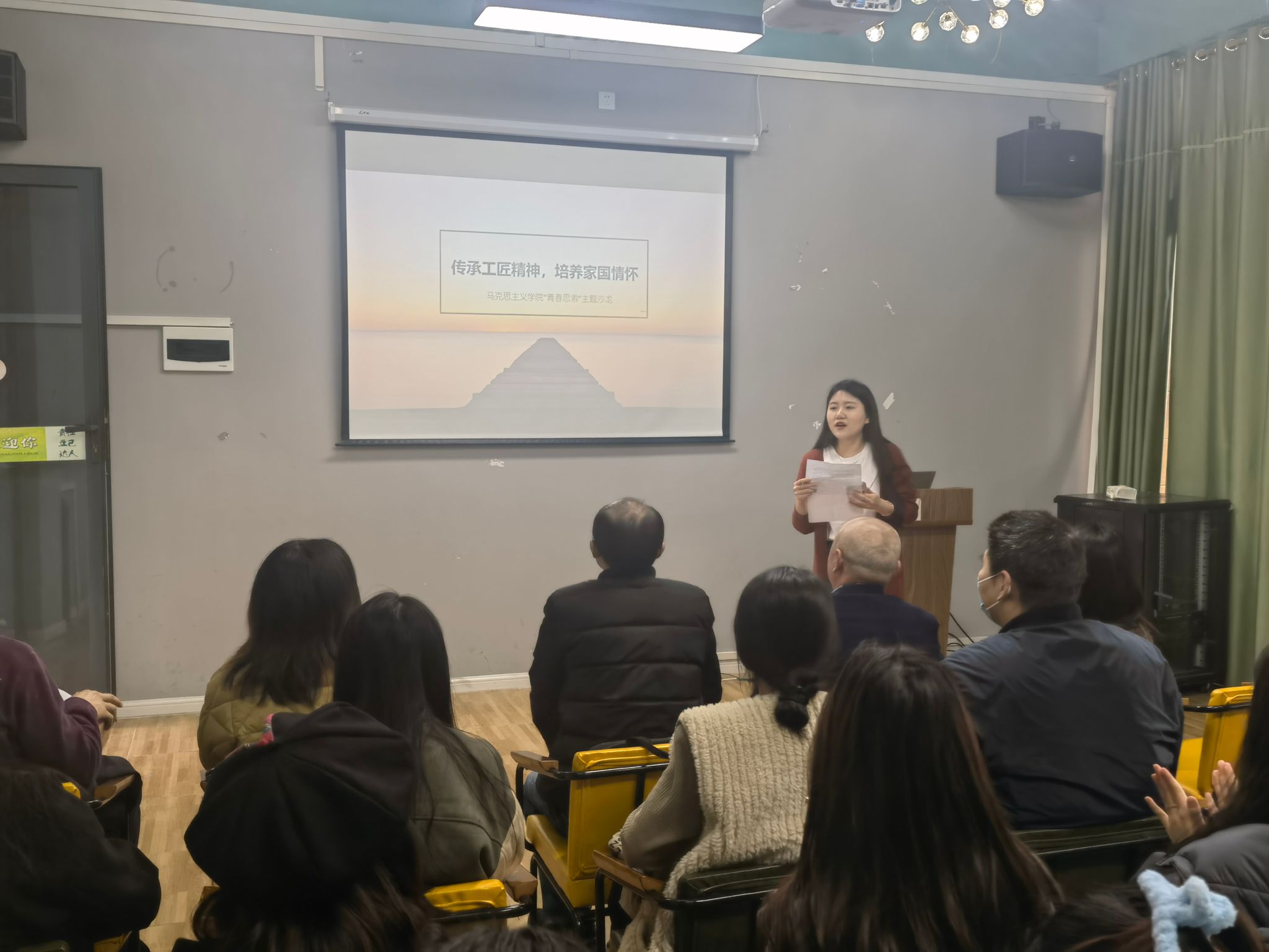 会议伊始,王老师讲解了思政的内涵及课程思政的意义,强调了思政教育在培养高素质人才中的重要作用。并指出思政课教师及专业课教师都要潜心立德树人,矢志攻关创新,挖掘课程中蕴含的思政元素,教育引导学生领略工匠精神的内涵,以提升民族自豪感,增强文化自信,对未来的职业生涯有新认识和新规划。