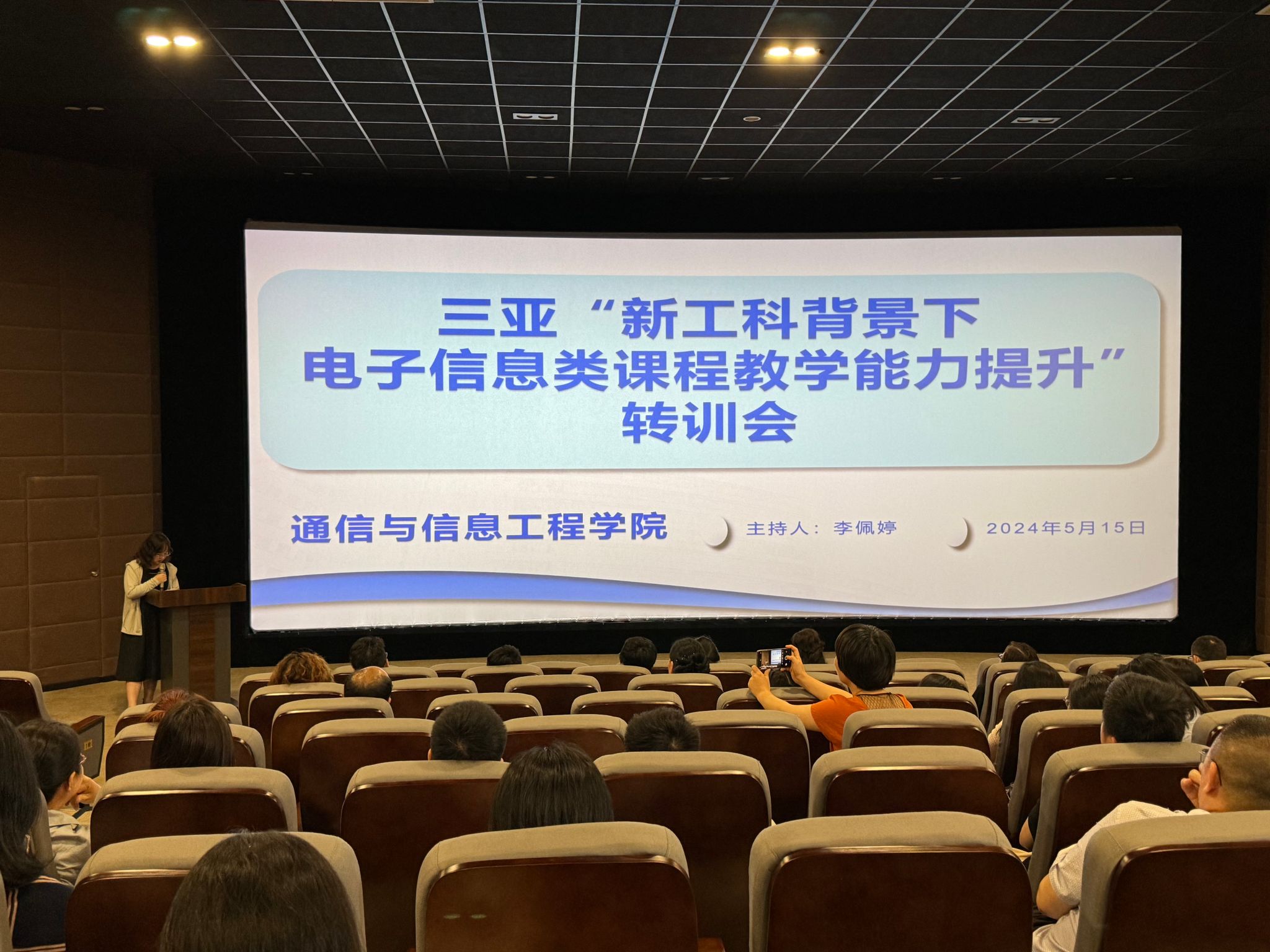 为了将学院在三亚举行的“新工科背景下电子信息类课程教学能力提升”培训会的核心精神和实践经验传达给每一位教师,通信与信息工程学院于5月15日在六度空间(电影)播放厅成功举办了一场转训会议。此次会议由行政主管李佩婷老师主持,学院全体教师参加,旨在深入贯彻落实新工科教育理念,全面提升电子信息类课程的教学质量。