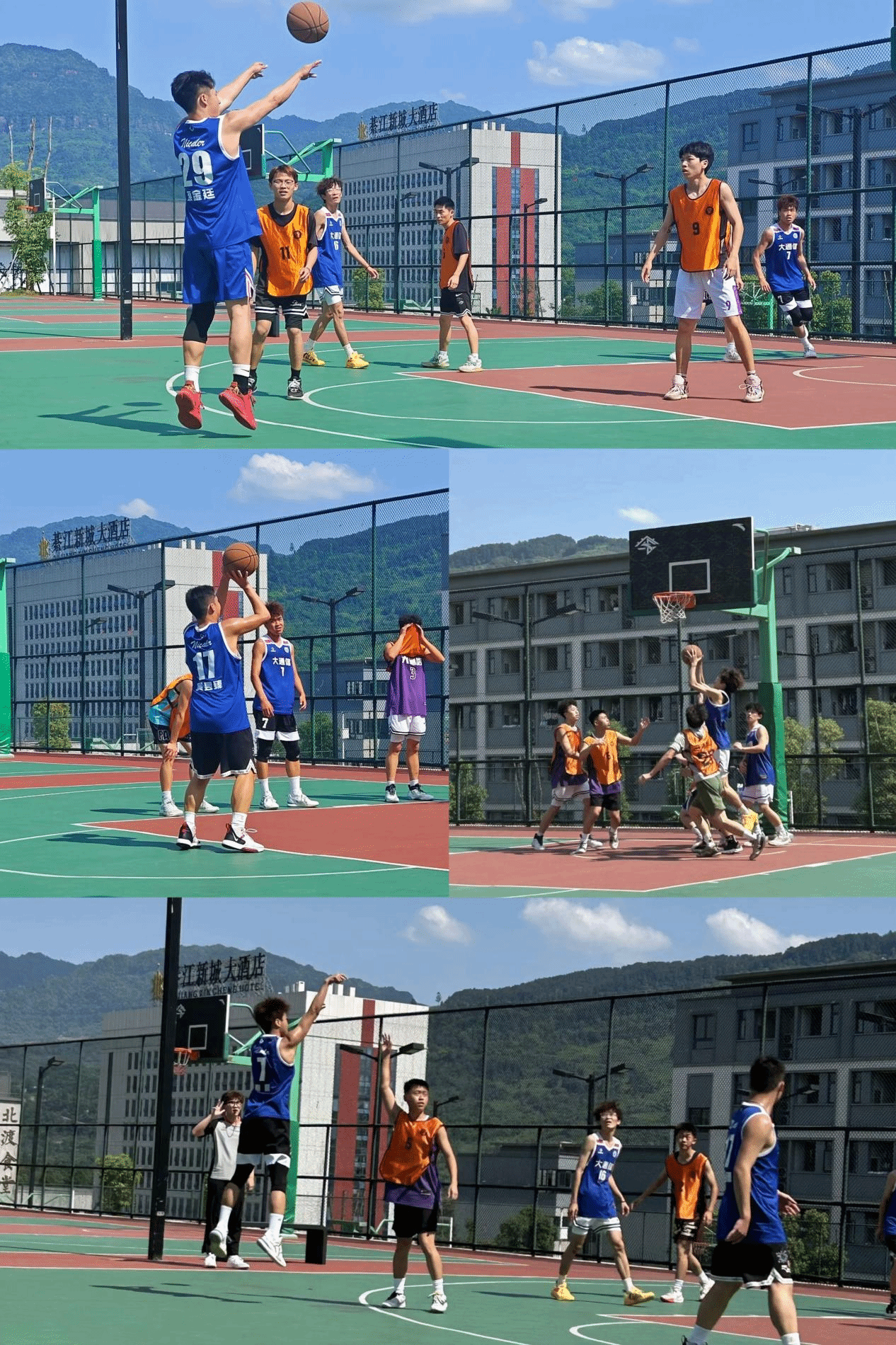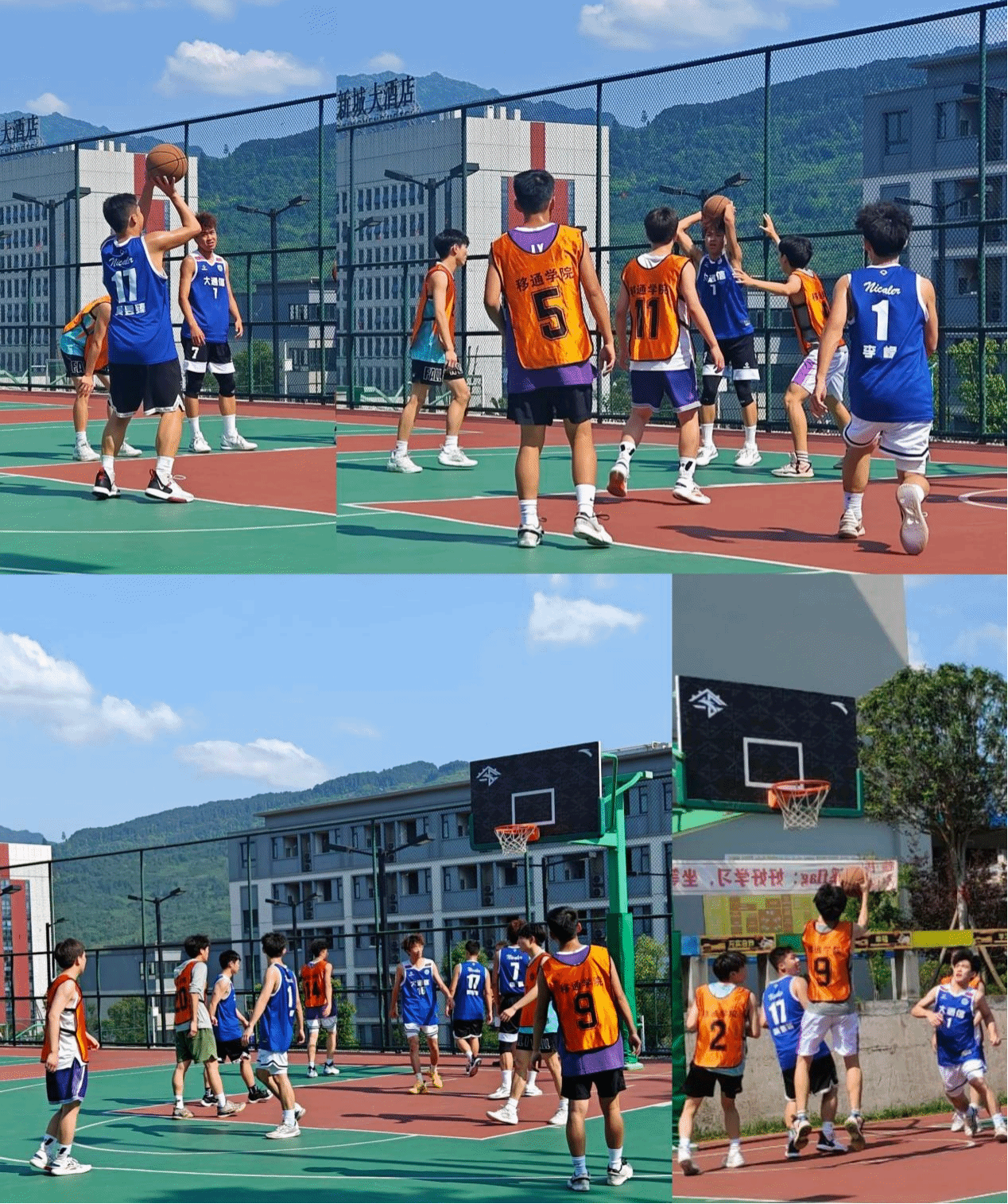 球赛如火如荼的进行着,球员们顶着热情似火的太阳奔跑、跳跃、投篮……他们的每一次全力追赶、每一次进攻防守、每一次精准传球、每一次进篮得分都是他们用行动向我们诉说着他们对篮球的热爱与执着。在激烈角逐中,两个队伍都表现出了出色的团队配合和顽强的拼搏精神,是他们不懈的追求和梦想的实现,是一种为了梦想付出所有,坚持到底的精神象征;同时还是他们在劳累的学习后放松身心,释放压力的有效途径。他们在打了球之后,不管多累,都能笑容满面。