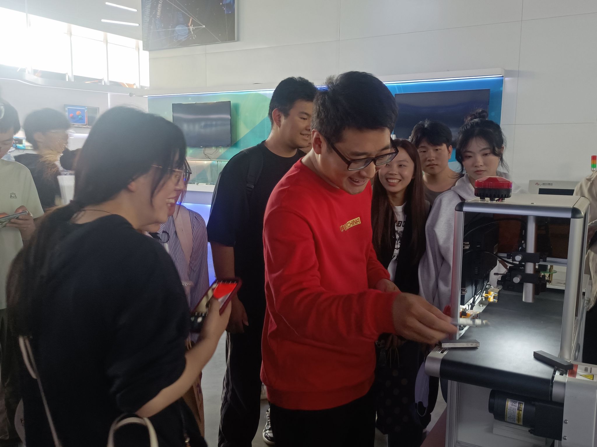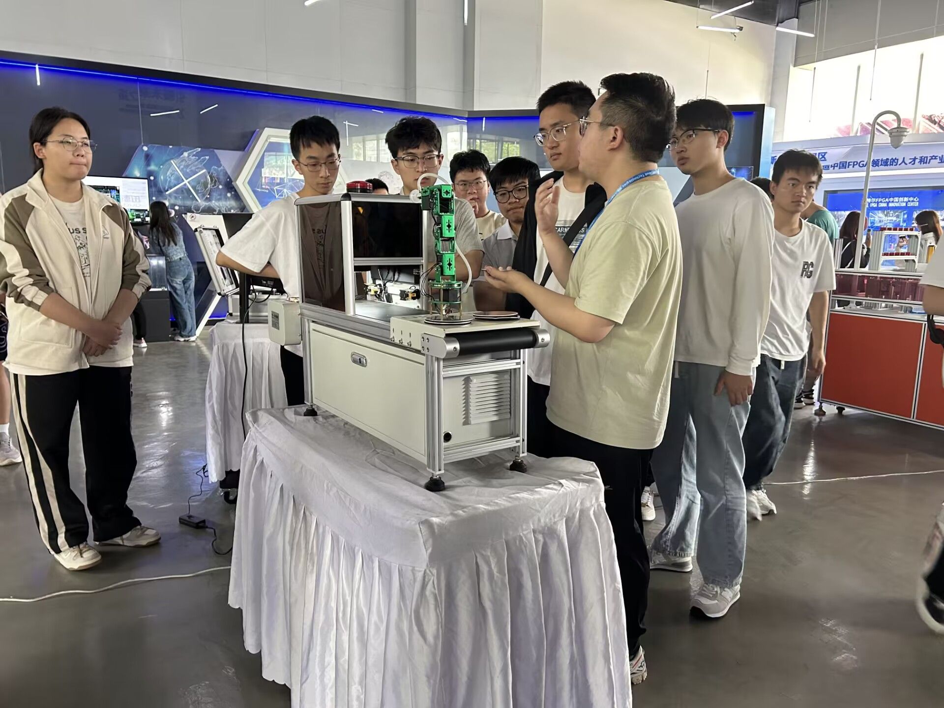 在熊莉娅老师的引导下,学生们分三批次参观了创新中心。她详细介绍了中心的多个功能区,包括FPGA云加速中心、应用展示区、产业化孵化区、人才培养项目、以及定期举办的峰会和大赛等,全面展示了该中心在创新创业方面的独特优势和亮点。学生们对展示区内丰富的创新技术和广泛的应用领域印象深刻,这不仅开阔了视野,也让他们思考如何将自己的专业知识与市场需求相结合,更好地服务于企业。